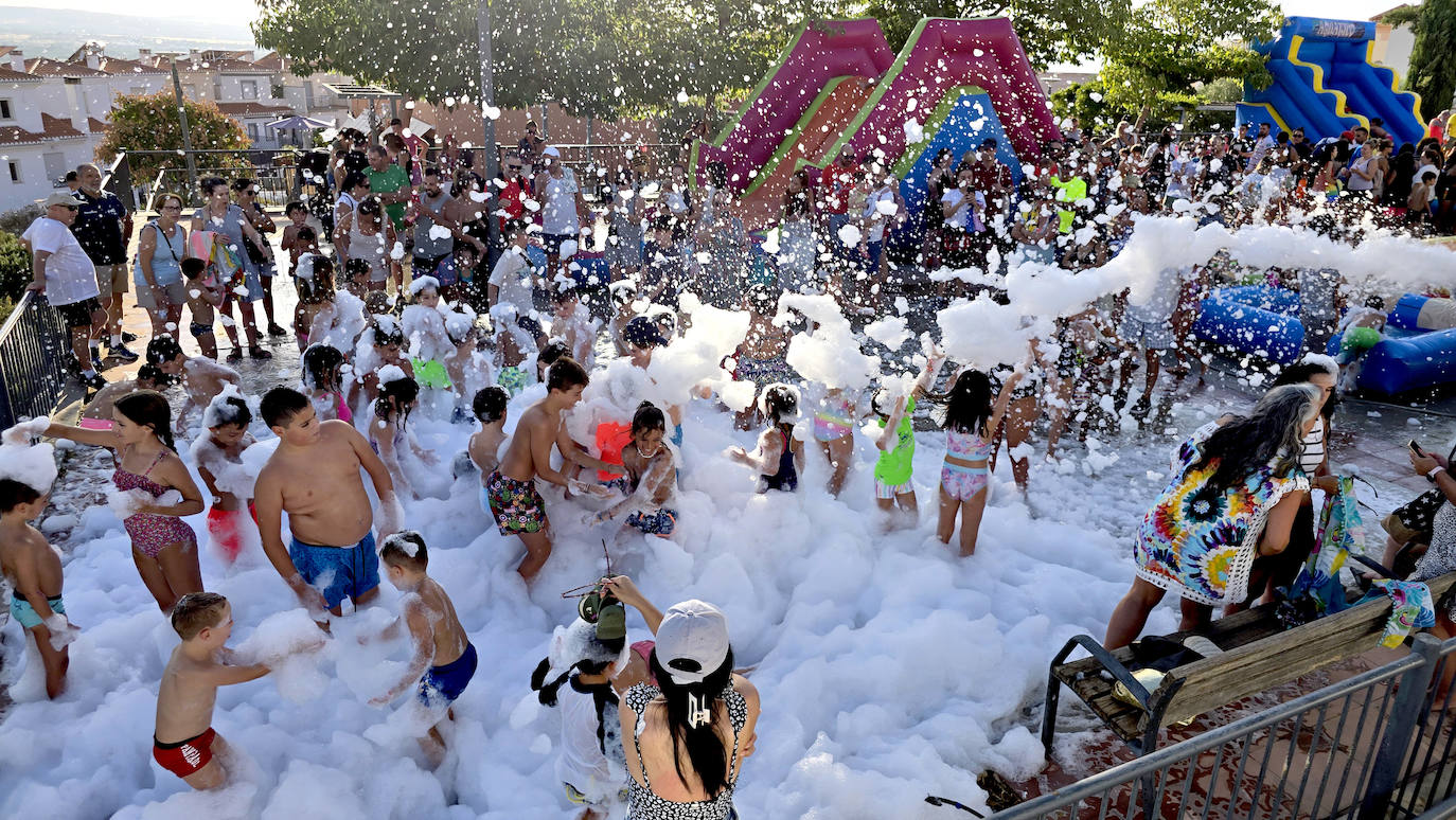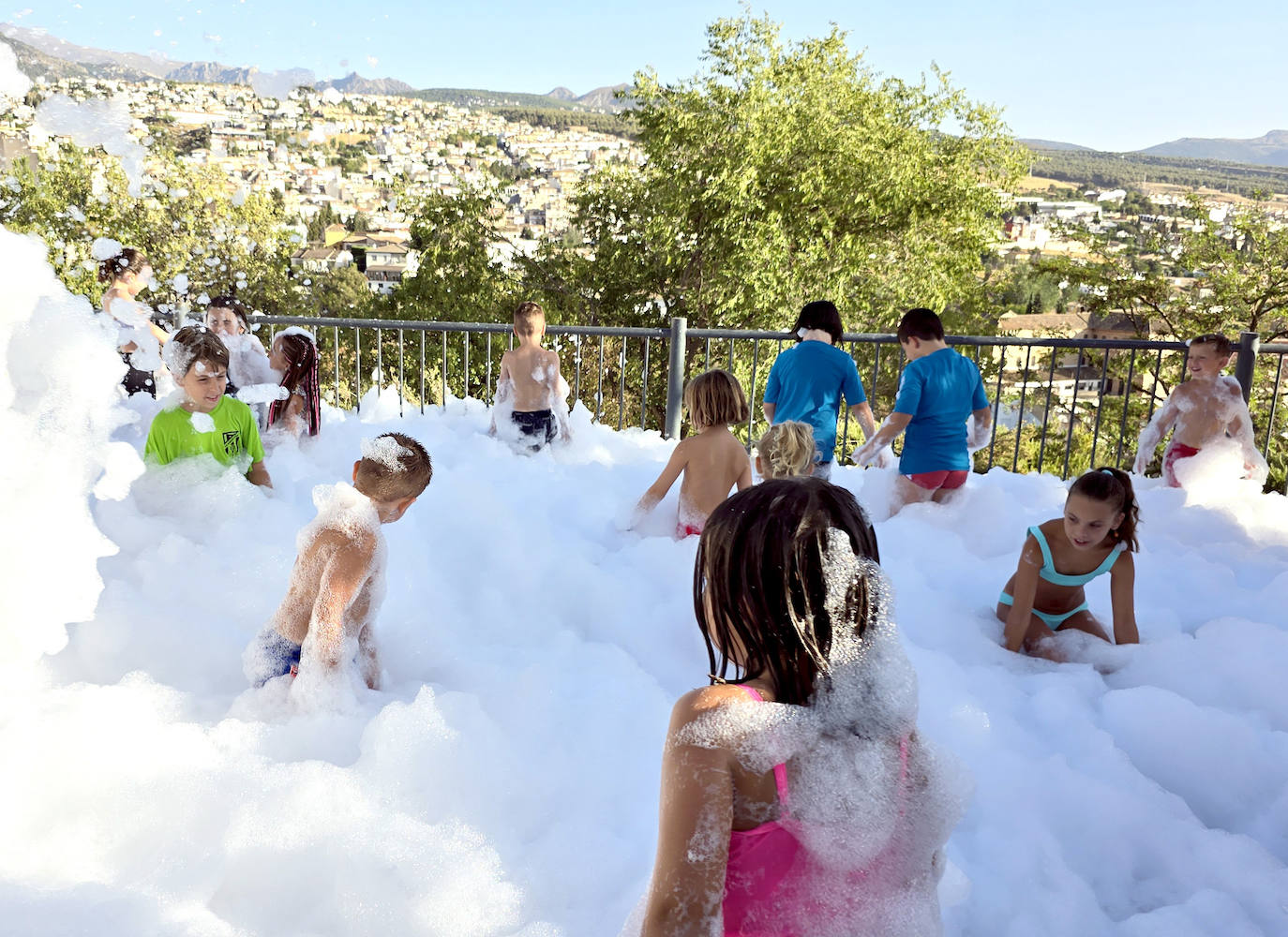 'Acualandia': espuma y diversión en la plaza de San Miguel Bajo
