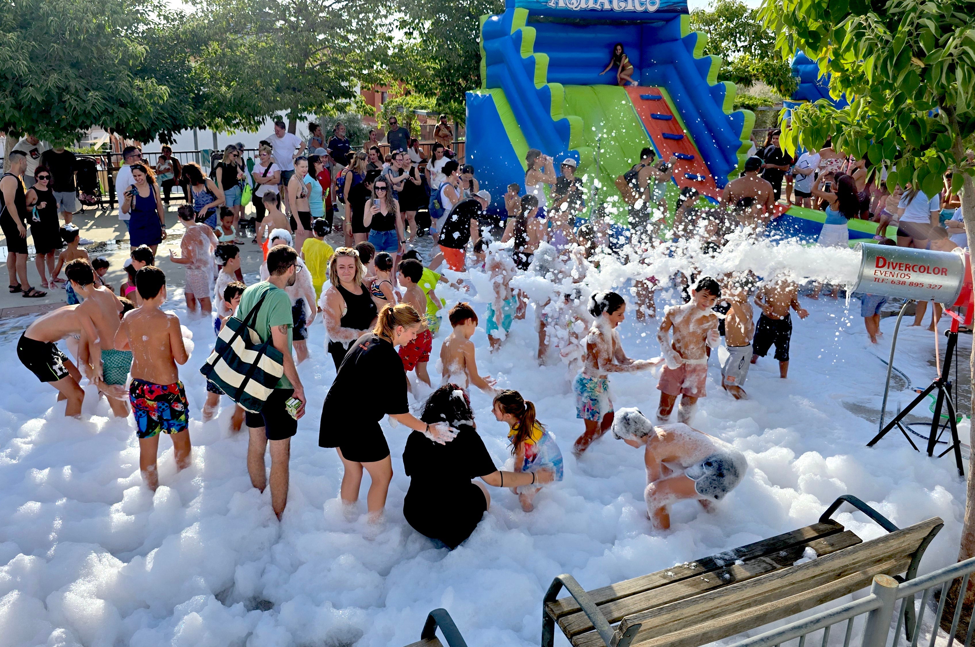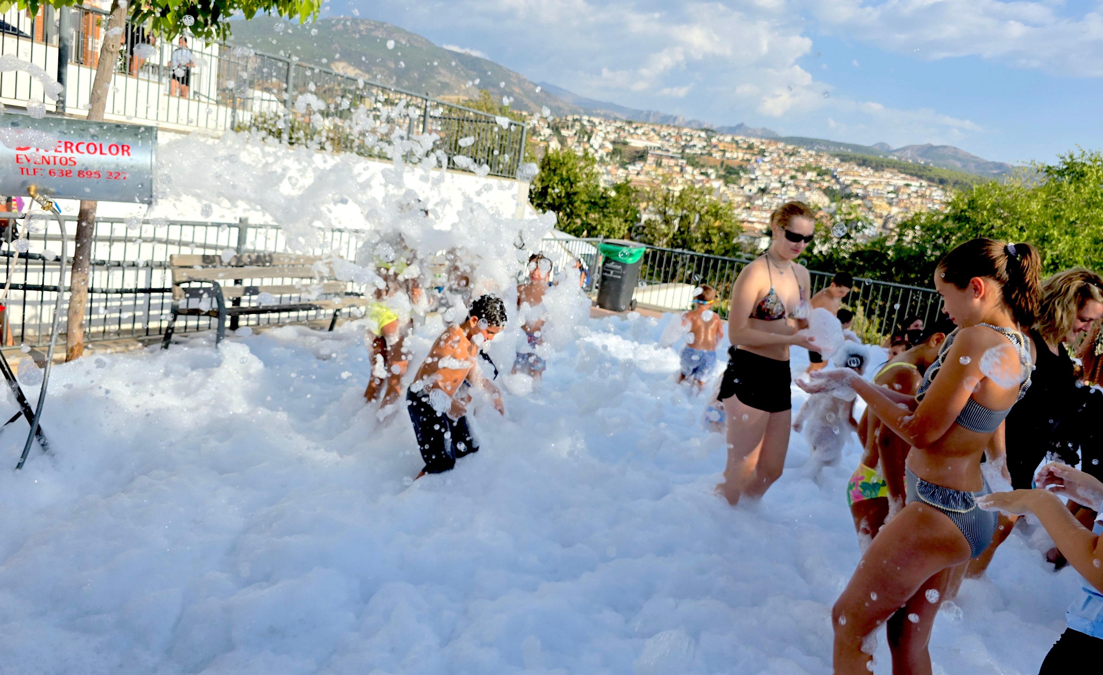 Actividades acuáticas, fiesta de la espuma familiar, baños, juegos de agua y merienda tradicional. Todo esto fue posible con 'Acualandia' un lunes por la tarde ... en Huétor Vega, en la Plaza de San Miguel Bajo (junto a la Cuesta de las Cabras), en plenas fiestas de San Roque.