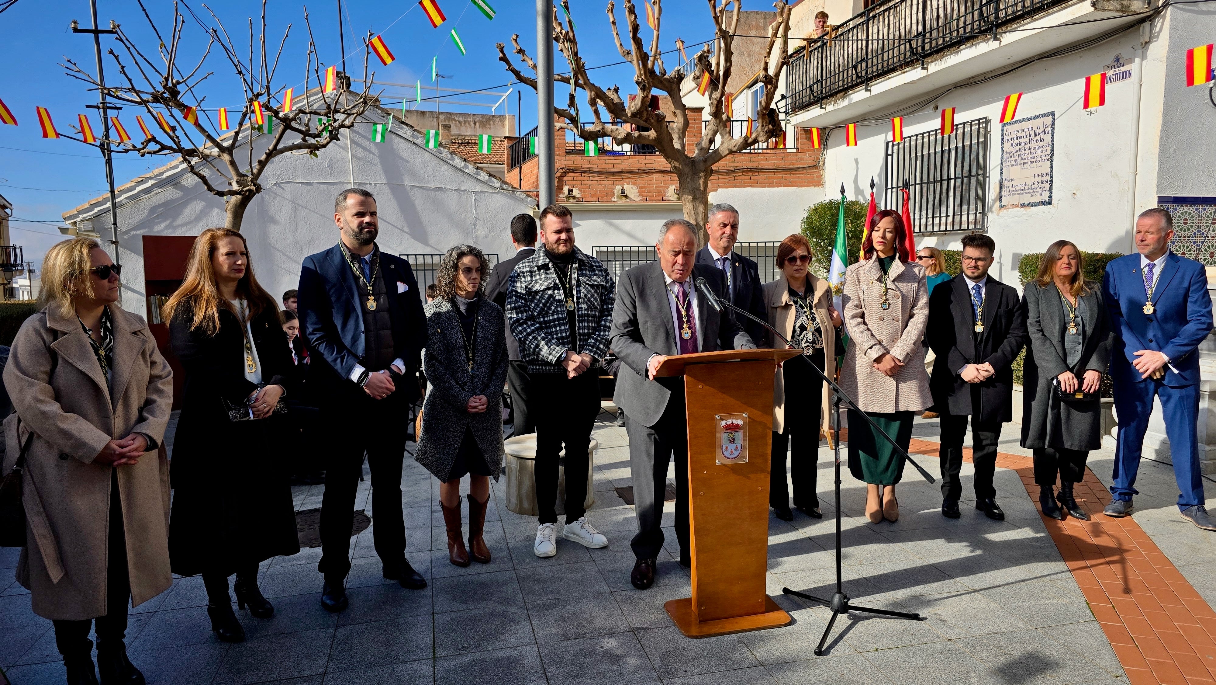 Rodeado de los ediles que conforman la corporación municipal, el regidor hueteño, Mario del Paso, reivindicó los valores constitucionales desde lo local. «La Constitución también se construye desde aquí, desde lo cercano, desde nuestro modo de convivir, de participar y de entender el servicio público», manifestó. «Nuestra Carta Magna reconoce la importancia de los municipios como instituciones básicas del Estado, cercanas al ciudadano, llamadas a garantizar la prestación de servicios esenciales y a promover el bienestar de toda la comunidad. Y es precisamente aquí, en Huétor Vega, donde este mandato constitucional cobra sentido cada día», añadió.