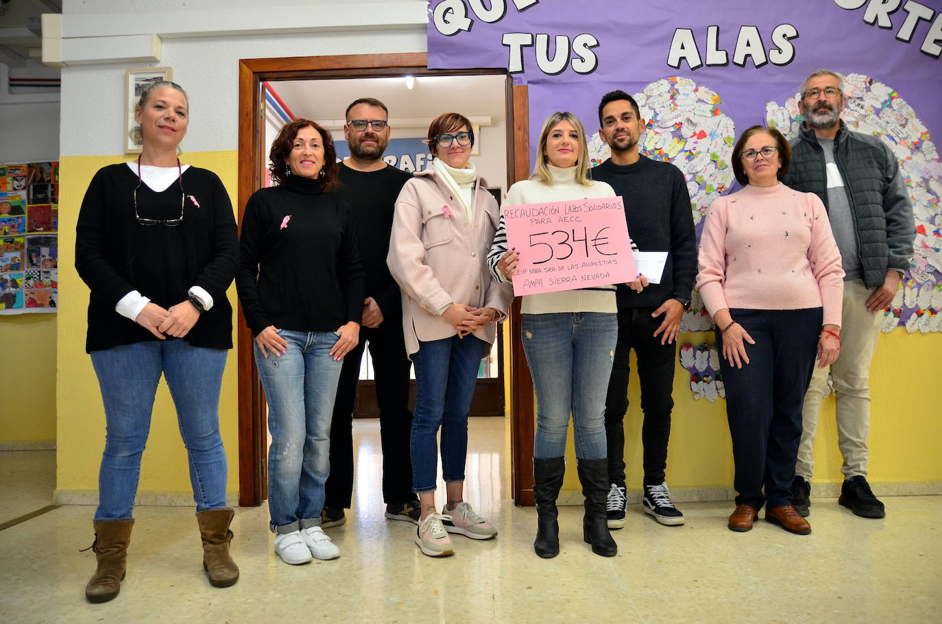 La Junta Local de la Asociación Española Contra el Cáncer (AECC) en Huétor Vega ha recibido hoy, en el CEIP Nuestra Señora de las Angustias, ... los 534 euros recaudados con la venta de lazos solidarios por iniciativa de la AMPA Sierra Nevada.
