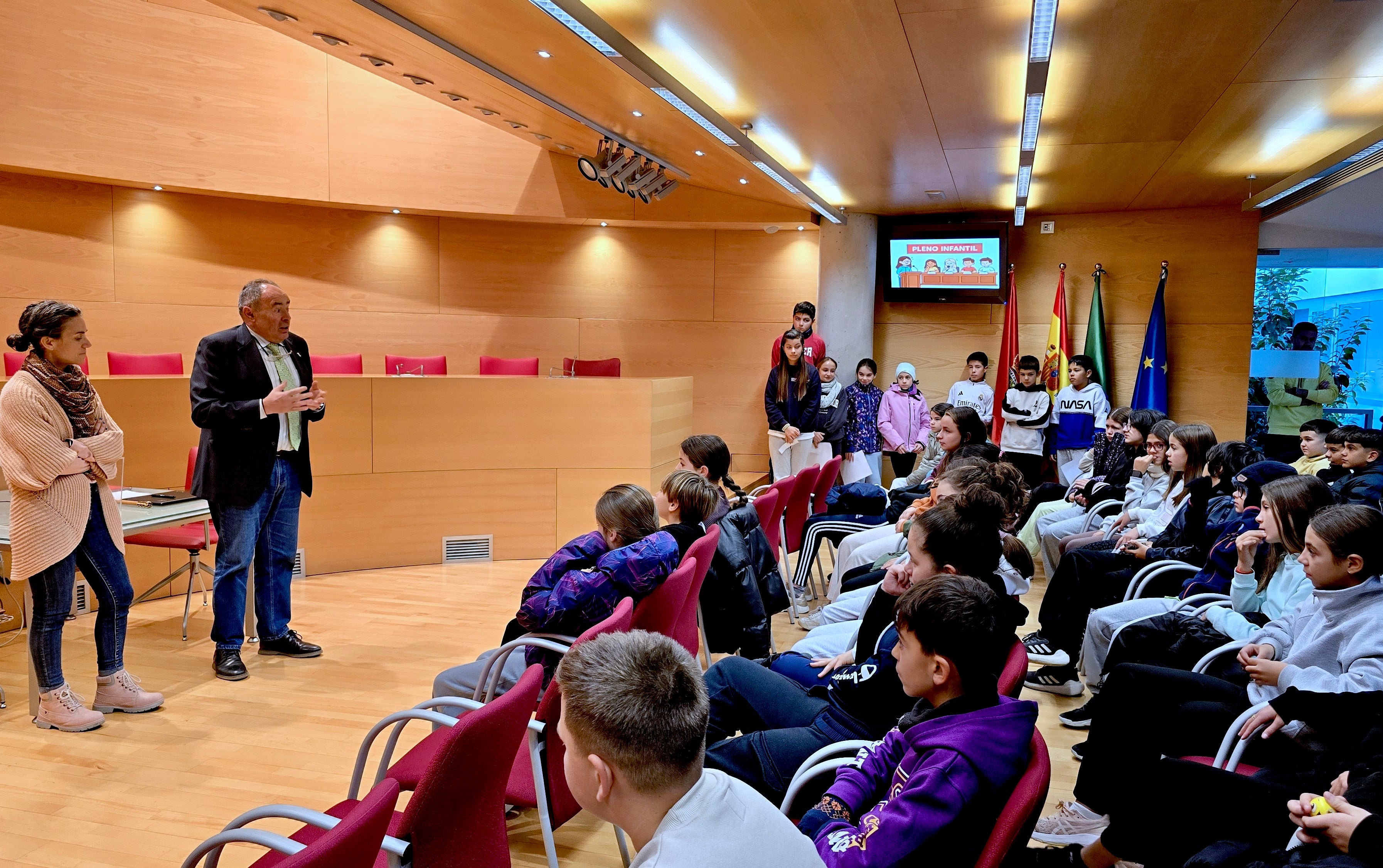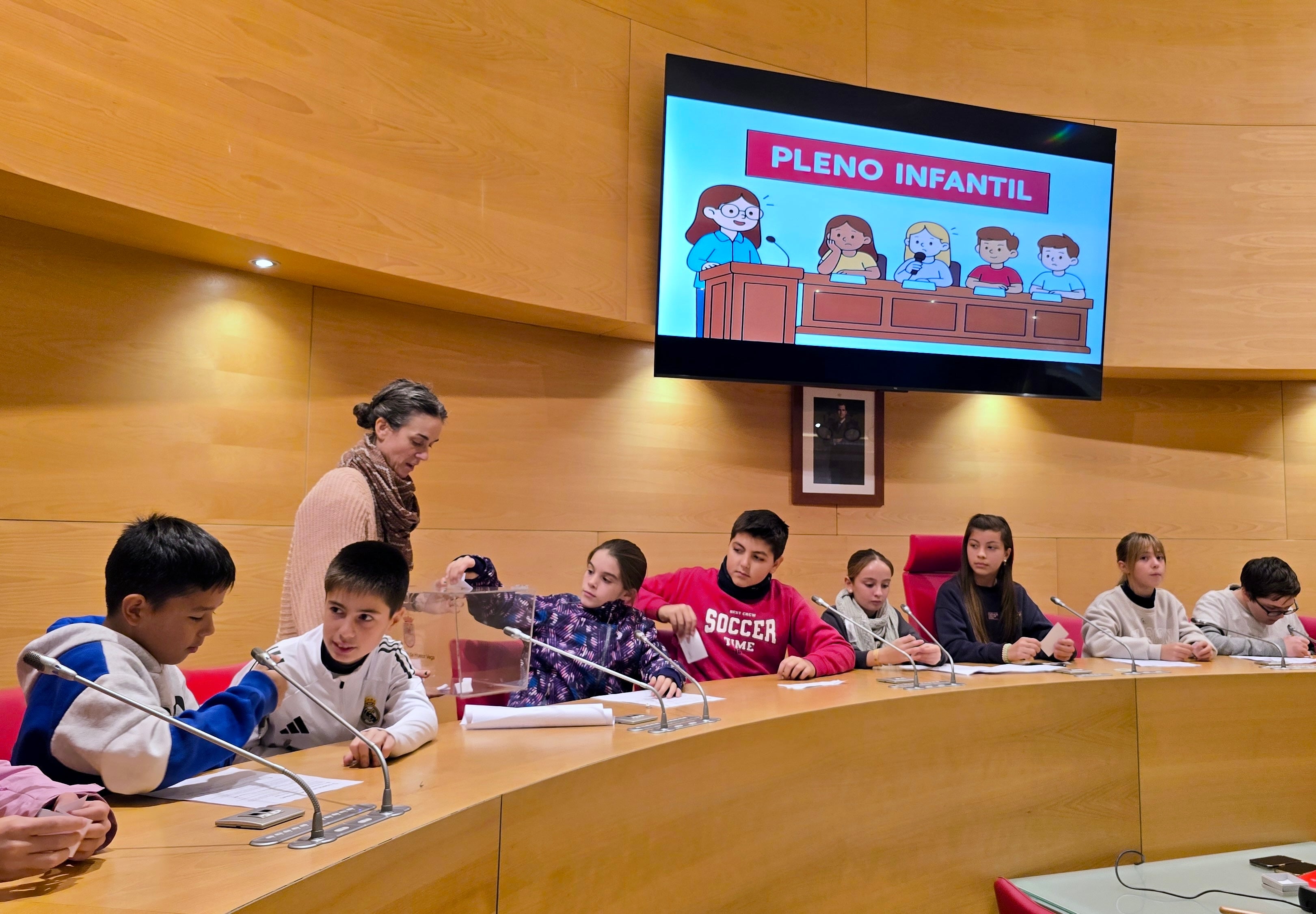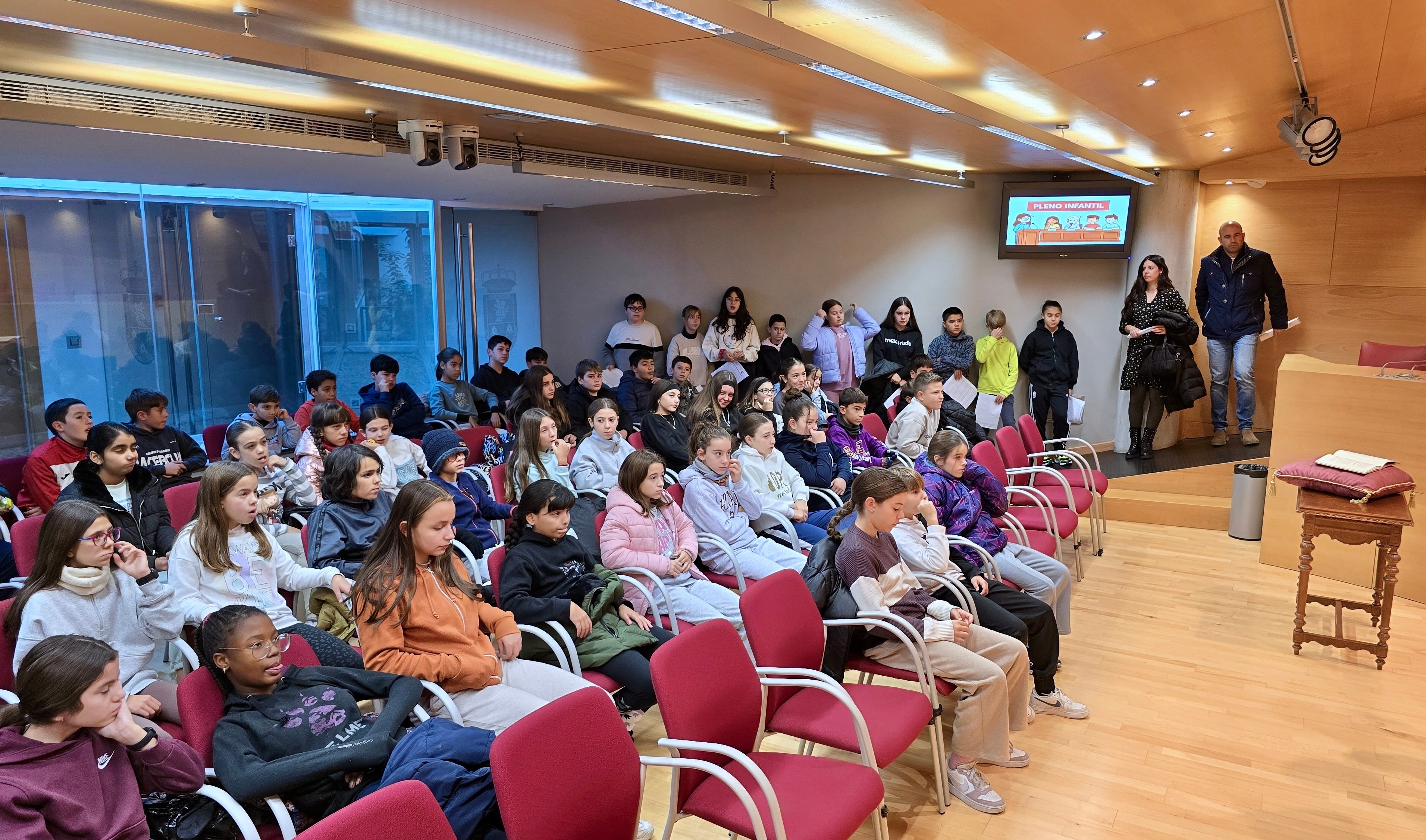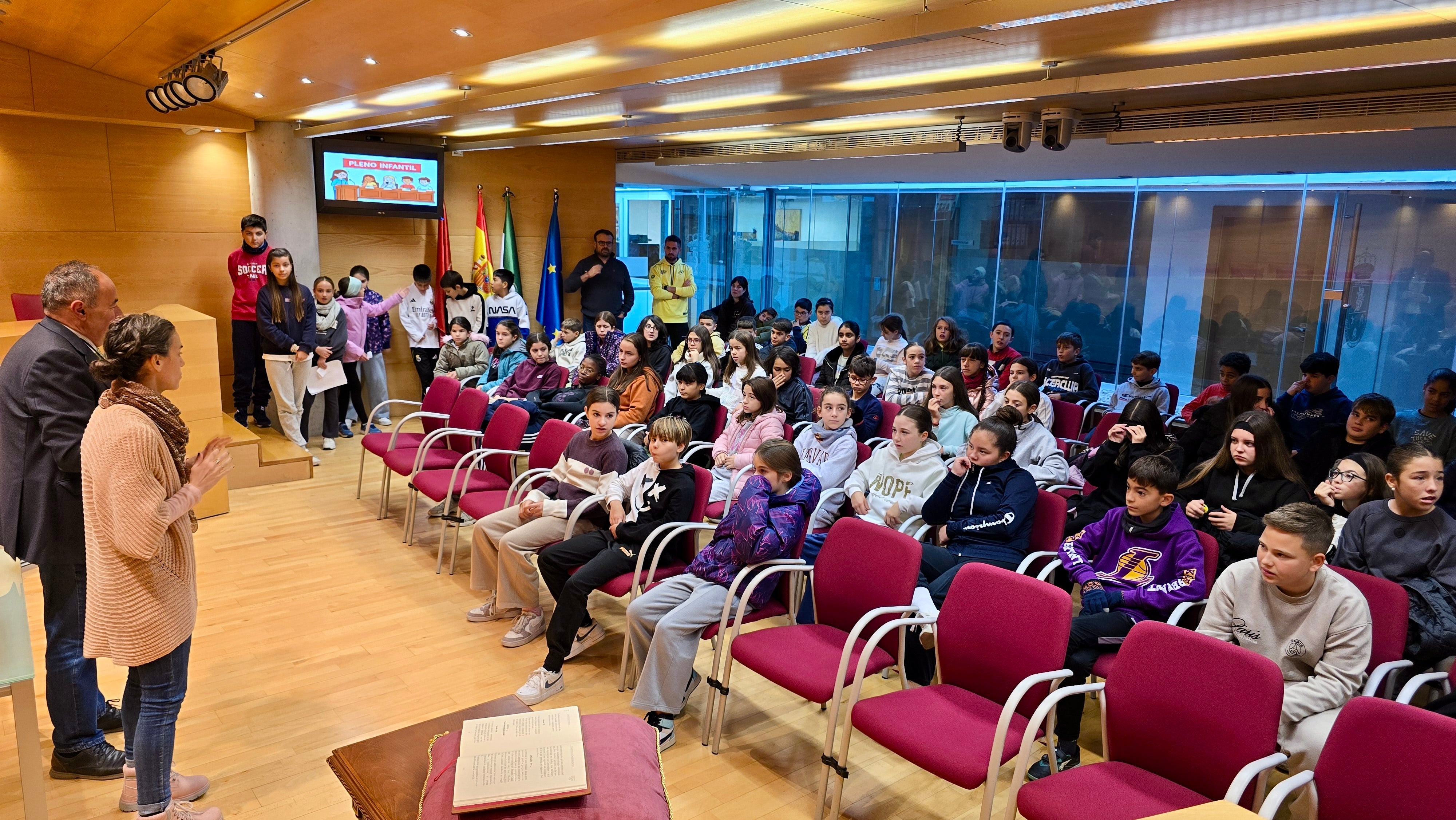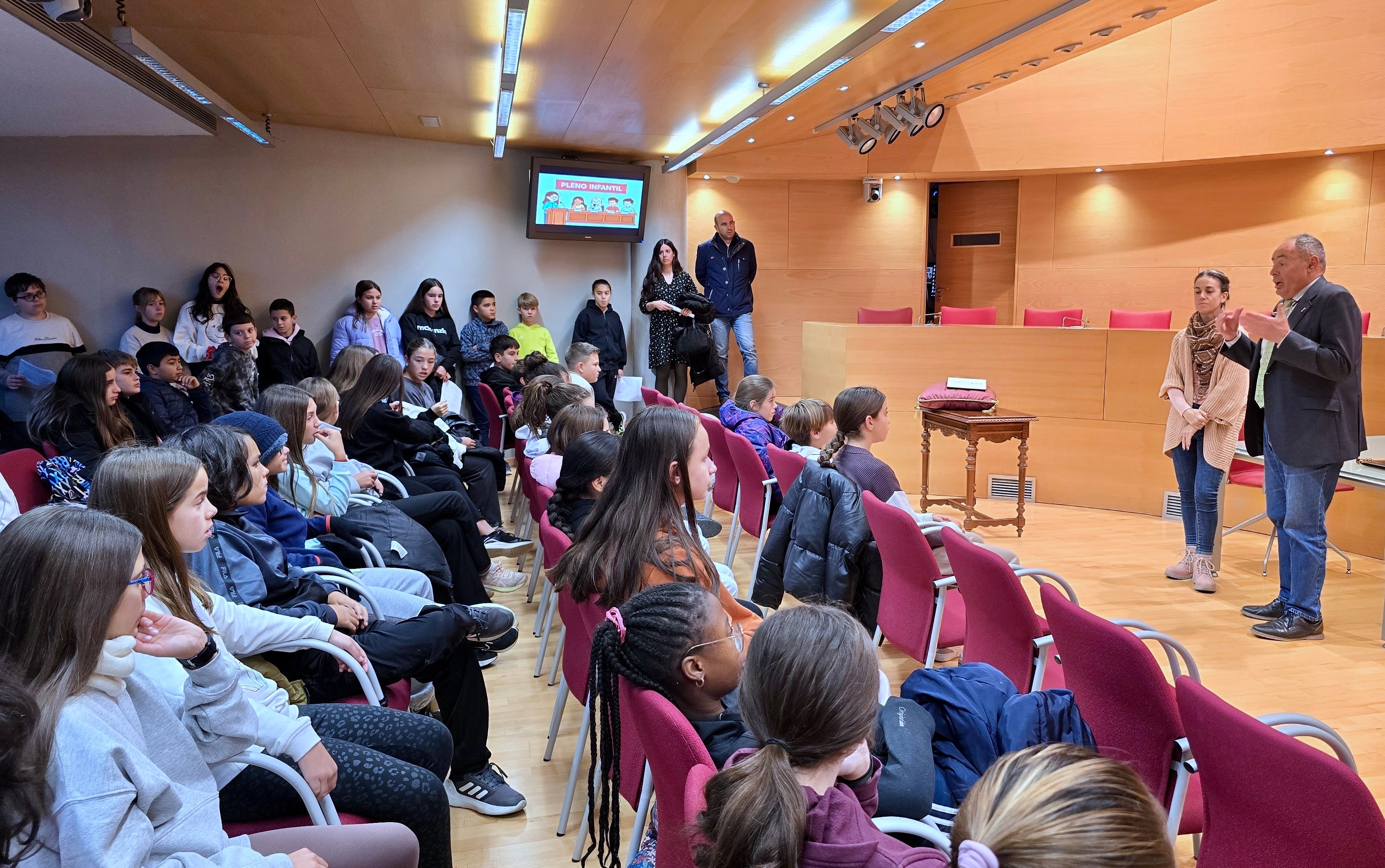 Durante la sesión, los escolares asumieron el papel de concejales y concejalas de la corporación municipal, eligiendo a su compañera Alejandra como alcaldesa. A continuación, presentaron diferentes propuestas e ideas para mejorar el municipio, fruto de un trabajo previo realizado en las aulas de manera coordinada entre ambos centros.
