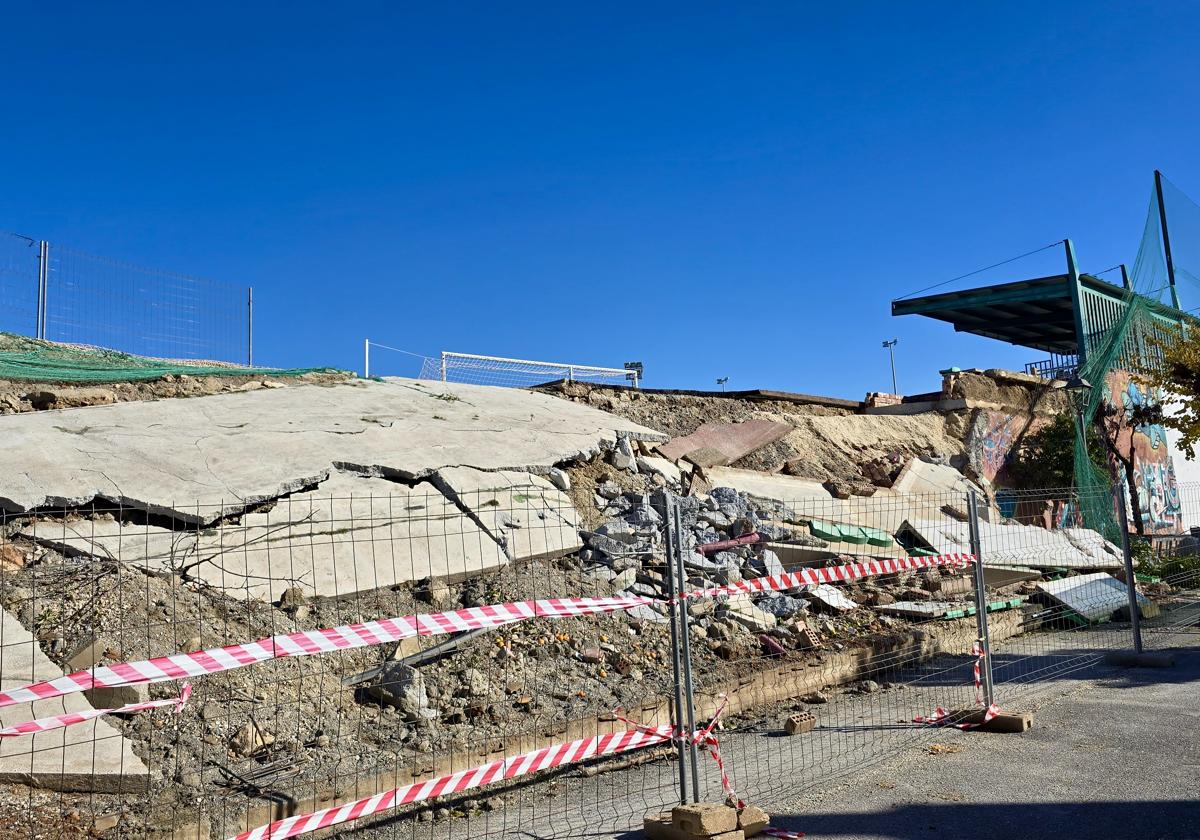 - Parte del campo de fútbol de Huétor Vega se viene abajo tras derrumbarse un muro
