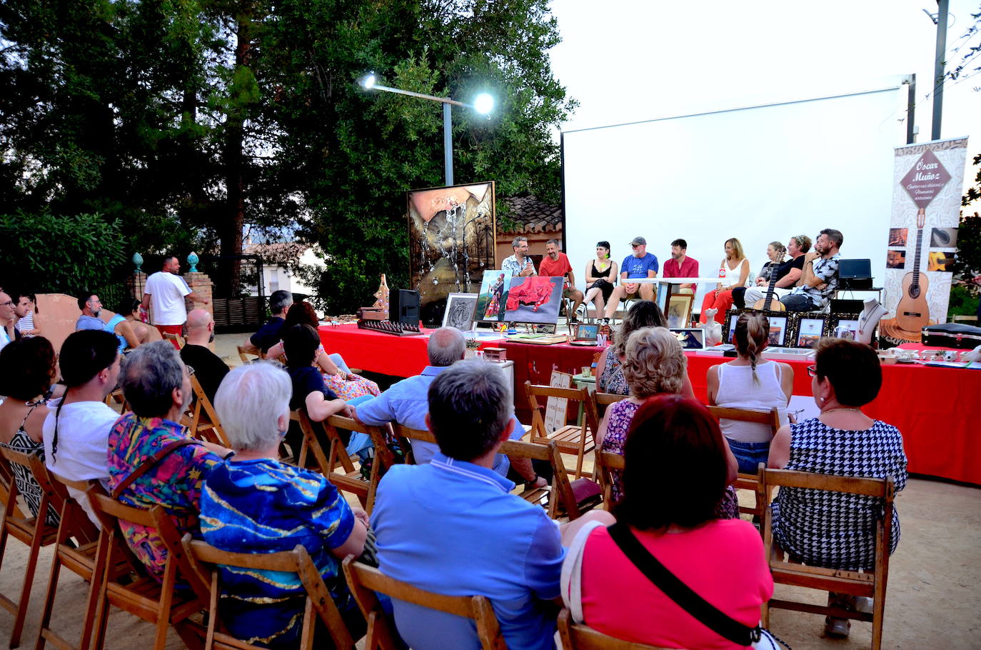 Este evento también ha contado con una exposición de diferentes piezas (cuadros con diversas técnicas, cerámica, muebles, bocetos, impresión 3D, joyería...), así como la creación en vivo, con gran expectación, de una acuarela de gran formato a cuatro manos por los artistas Abel Villén y Miguel Ángel Lacal, tomando como motivo la puesta de sol sobre la Vega que se podía admirar desde el Carmen de San Rafael.