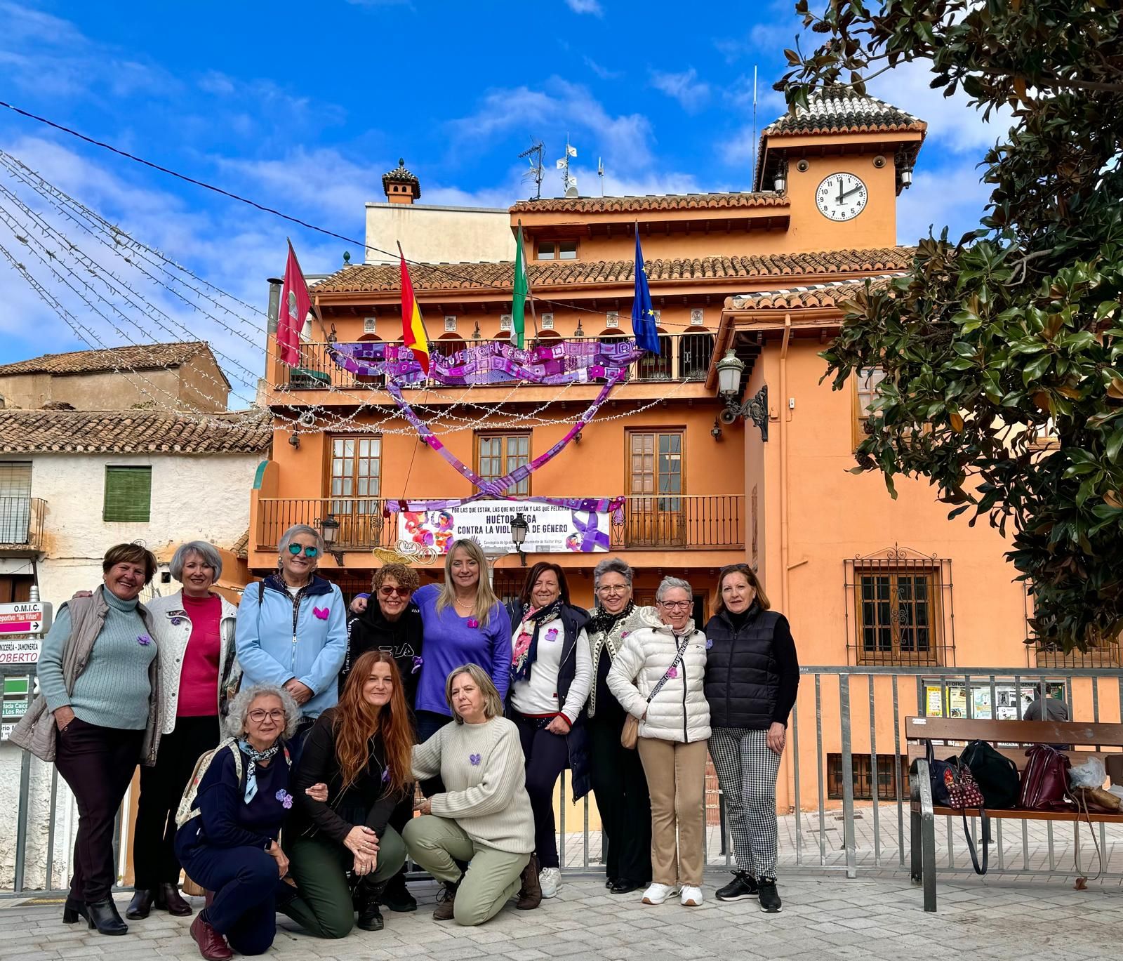 Una bufanda gigante reivindica el 25N en el Ayuntamiento de Huétor Vega
