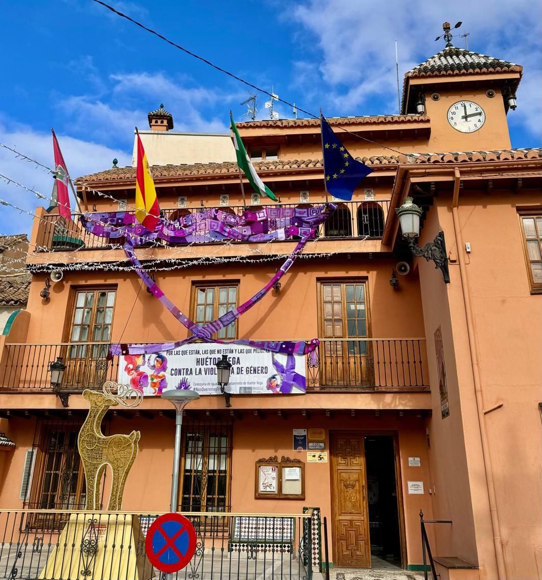 Una enorme bufanda, de 34 metros de longitud y en forma de lazo, luce en la fachada del Ayuntamiento de Huétor Vega con motivo del ... Día Internacional de la Eliminación de la Violencia contra la Mujer. Más de veinte mujeres han participado en su elaboración, con las distintas partes que componen este gran tejido, a través del taller de croché 'Tejedoras de vida', puesto en marcha por la concejalía de Igualdad e impartido por Marilyn Villena. Algunas de las participantes ya dominaban esta técnica y otras empezaron desde cero. El municipio cuenta con una amplia programación alrededor del 25N.