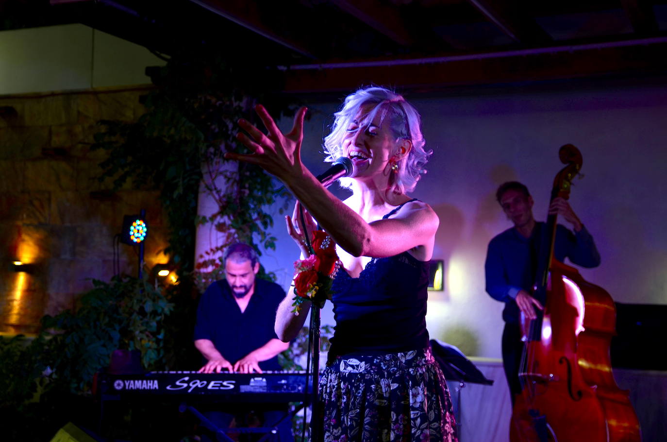 La concejala de Cultura, Elisa González Pedraza, dio la bienvenida pasadas las diez y media de la noche. Los TrianaJazz que pisaron las tablas a continuación, y que presentarán su renovada puesta en escena el 23 de julio en El Jardín de Industrial Copera (La Zubia), no son los mismos que empezaron a recorrer las salas de Granada siete años atrás. Lo que surgió con timidez de la mano de la cantante Karmen García y el pianista Virveh Keyman ha evolucionado hasta el compacto cuarteto actual, con un contrabajo y una batería capaces de llevar los temas hacia giros insospechados. En cierto modo, TrianaJazz han renacido tras el covid. Lejos queda el minimalismo que plasmaron en epé. En Huétor Vega mostraron cómo sonará su próximo disco.