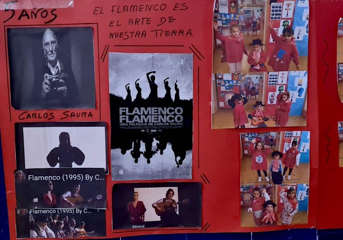 El CEIP Mariana Pineda de Huétor Vega muestra en una exposición las conexiones entre el flamenco y el cine, dos mundos inexorablemente unidos a través ... de la figura del cineasta Carlos Saura, fallecido en 2023 con 91 años. El director de películas-documento como 'Flamenco' (1995), obra de tremenda proyección en su día a nivel internacional, sirve de puente para hablar de algunos de los mayores talentos de este arte.