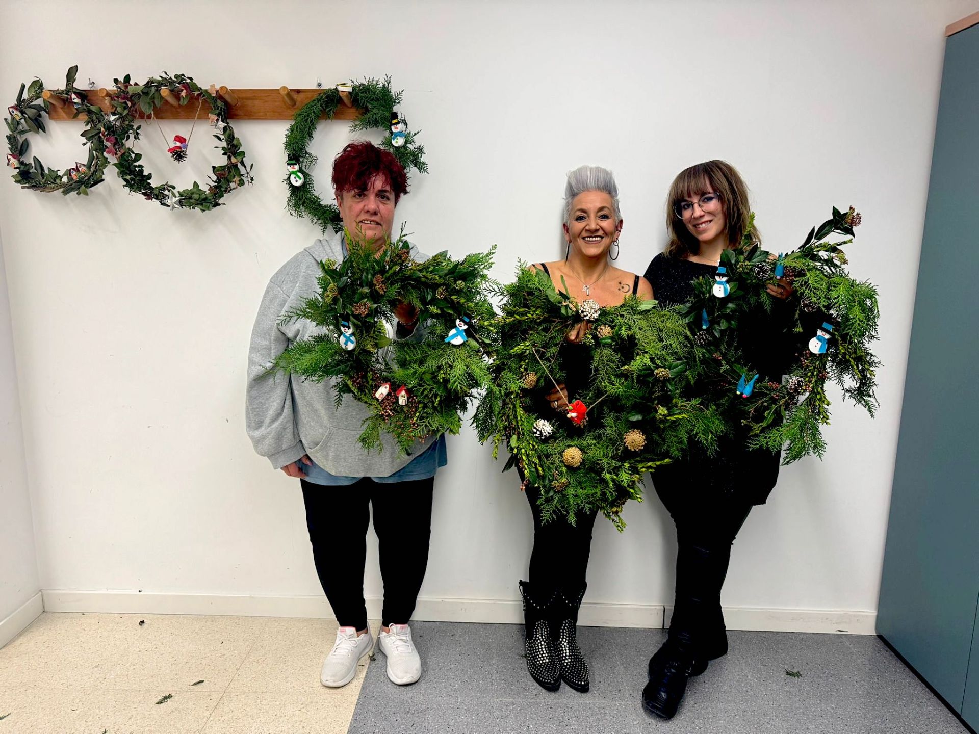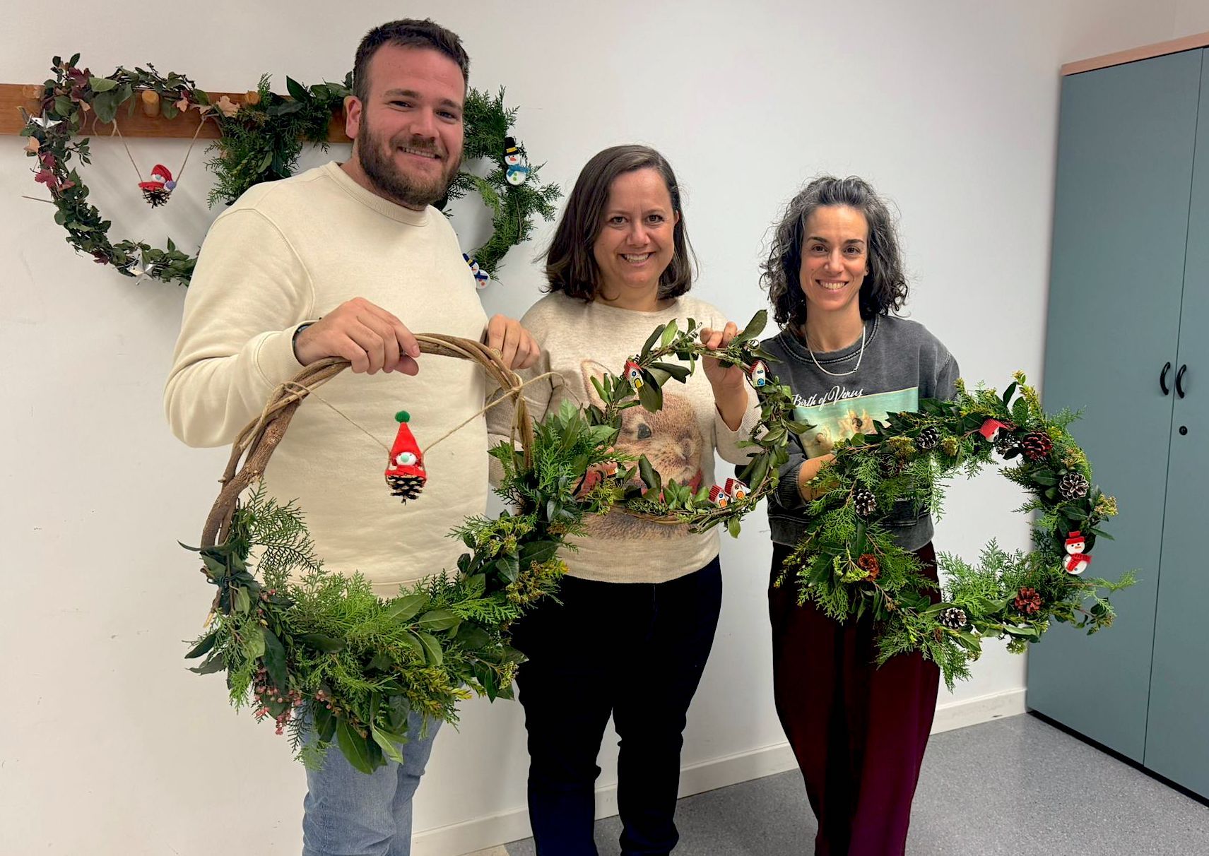 Coronas de Navidad con elementos reciclados en Huétor Vega