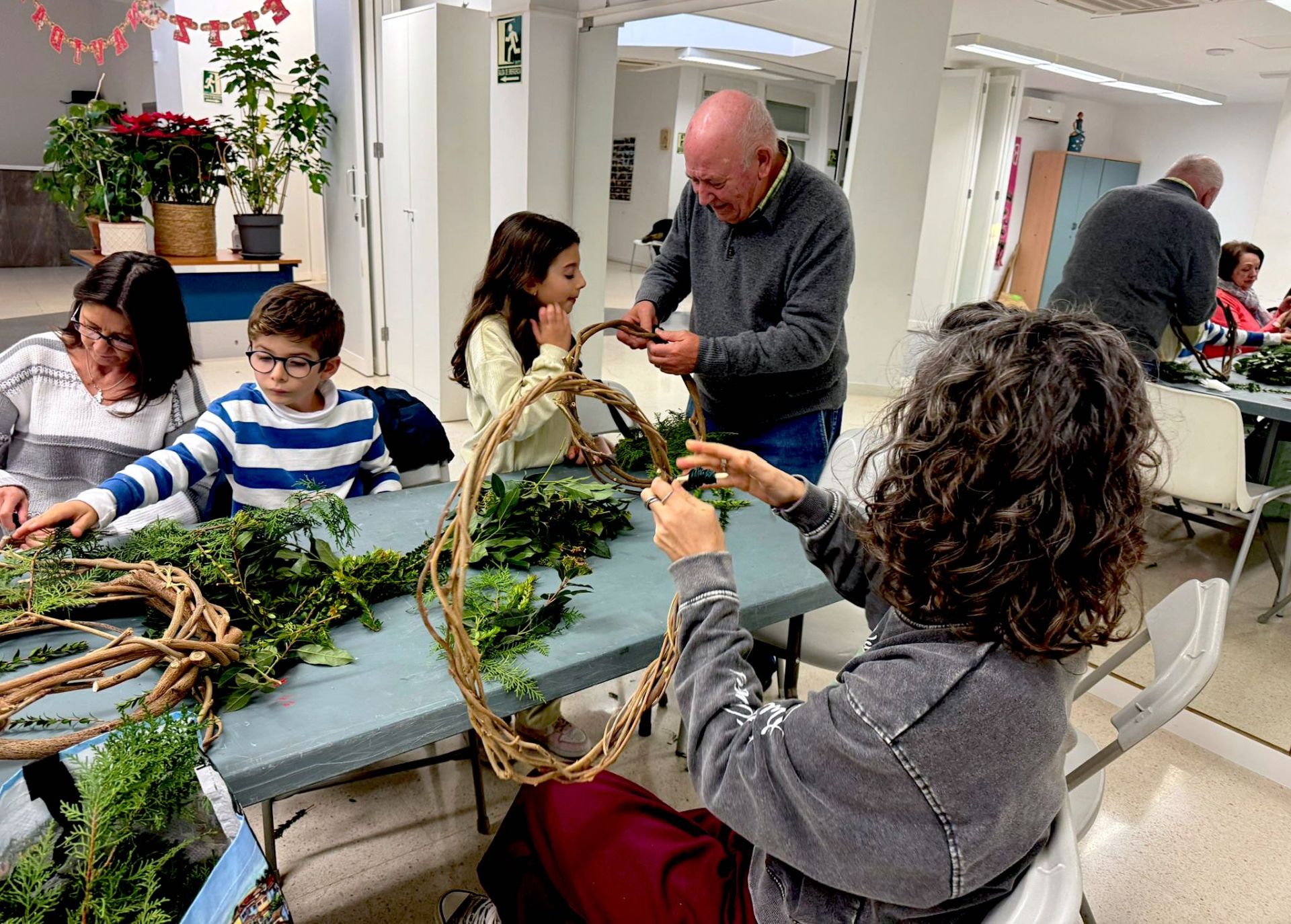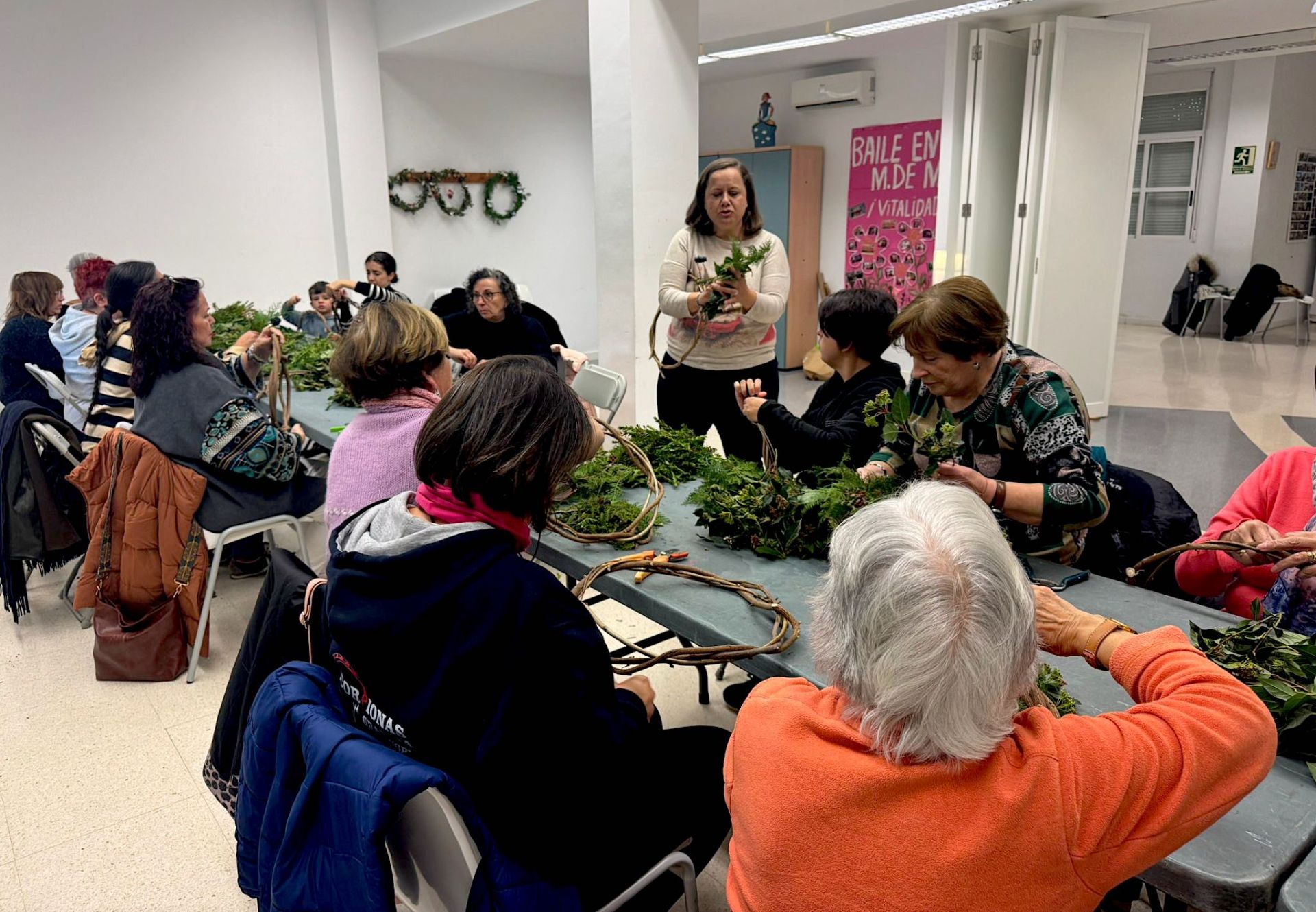 Bajo el título de 'Mayores y medio ambiente', las dos concejalías encargadas de estas áreas en el Ayuntamiento de Huétor Vega organizaron en el Hogar ... del Pensionista un taller de coronas de Navidad con elementos reciclados. Entre otros materiales, emplearon restos de poda de los jardines locales para dar forma a estos bonitos y originales adornos. Además de personas mayores participó gente de todas las edades, también los más pequeños.