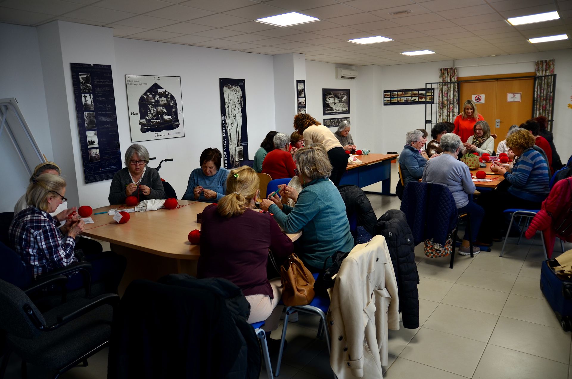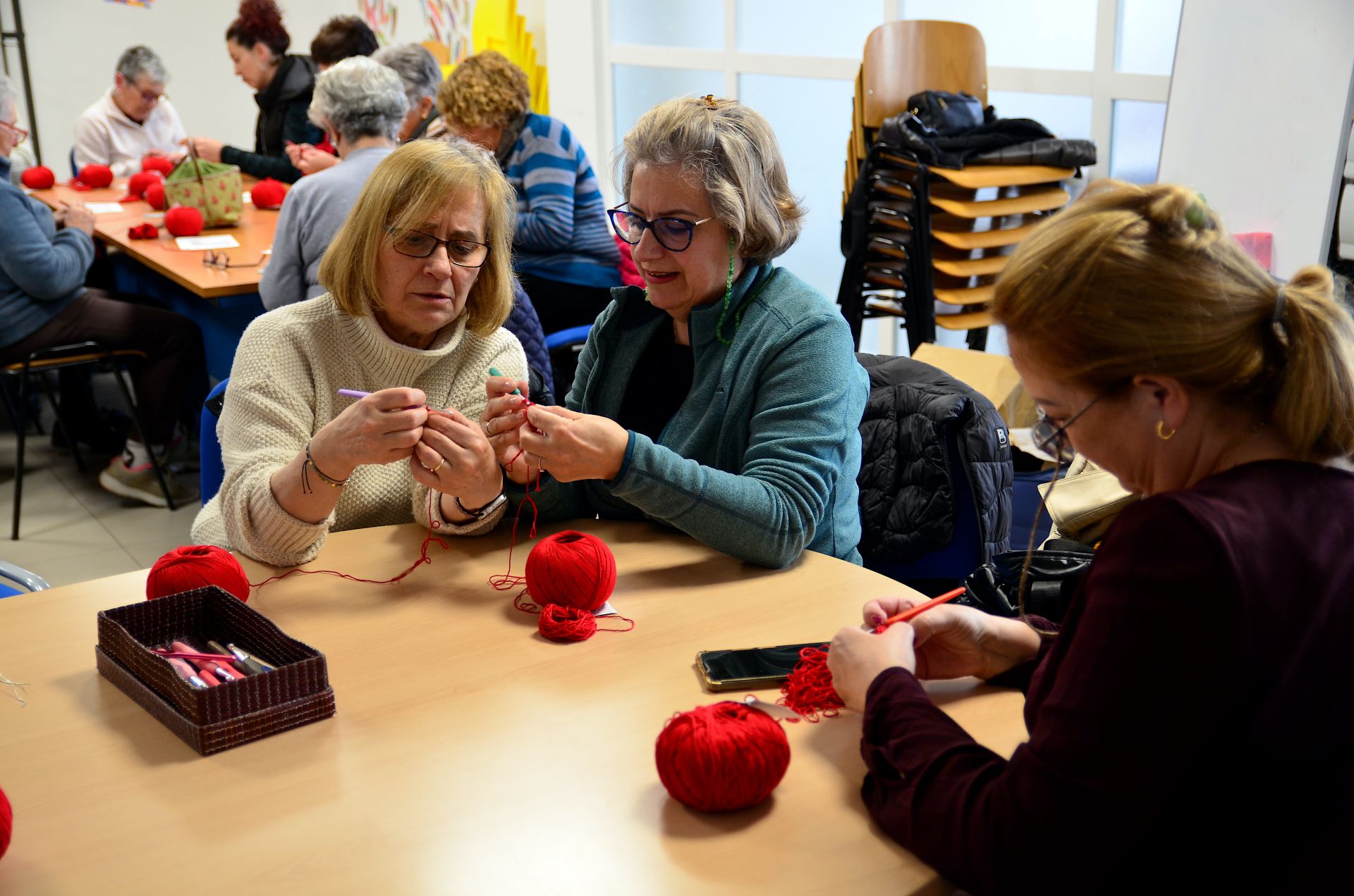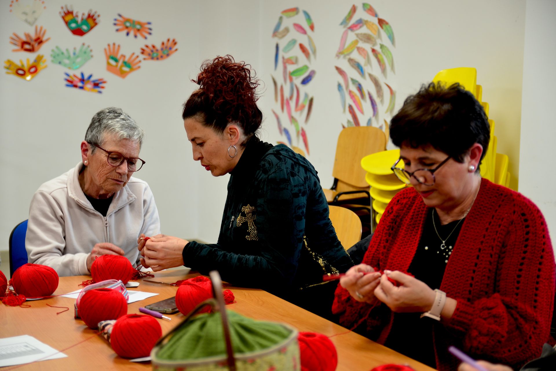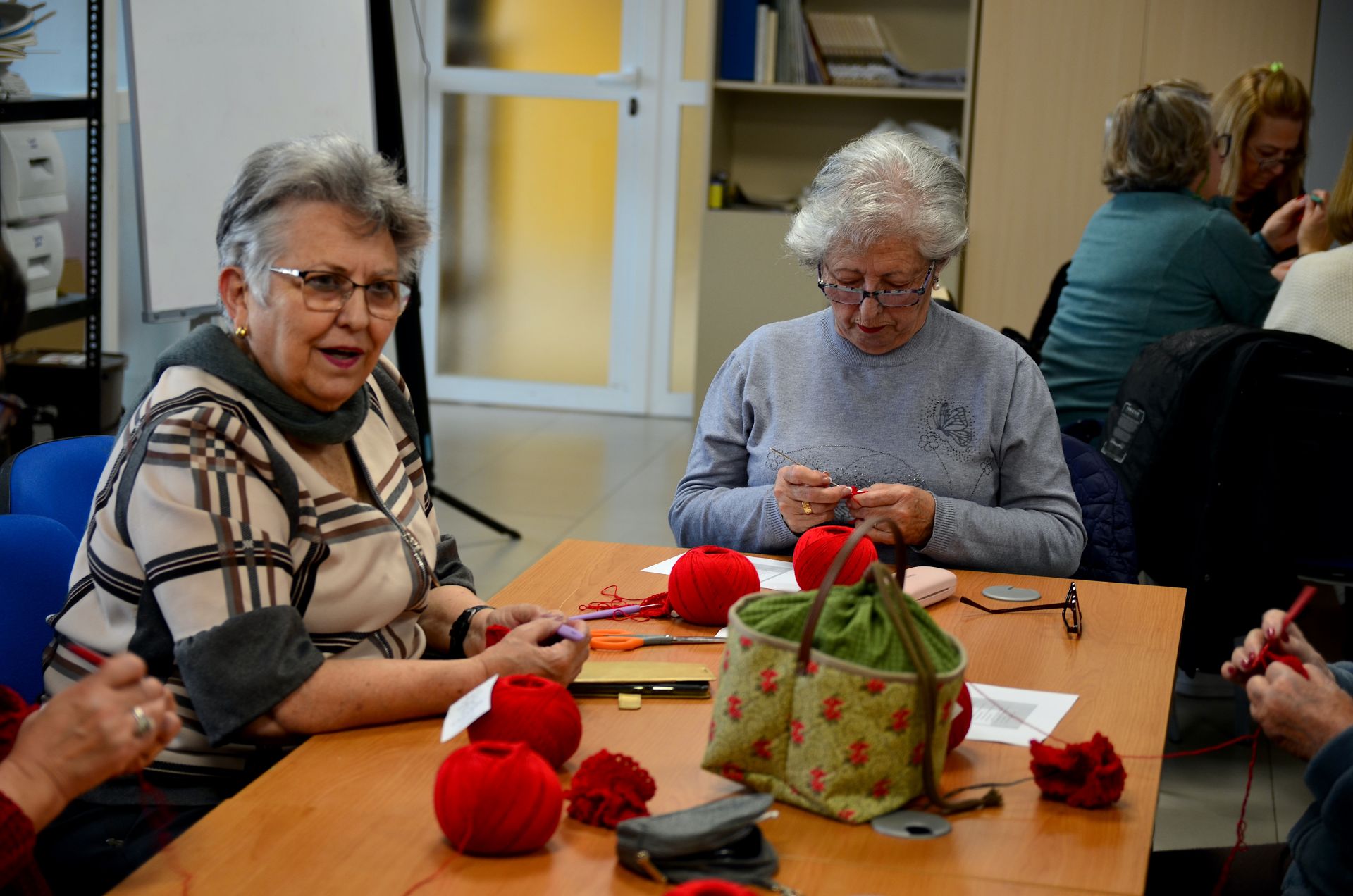 Una veintena de mujeres participan en el taller, dentro de la programación del 8M, del que saldrán los elementos de ganchillo