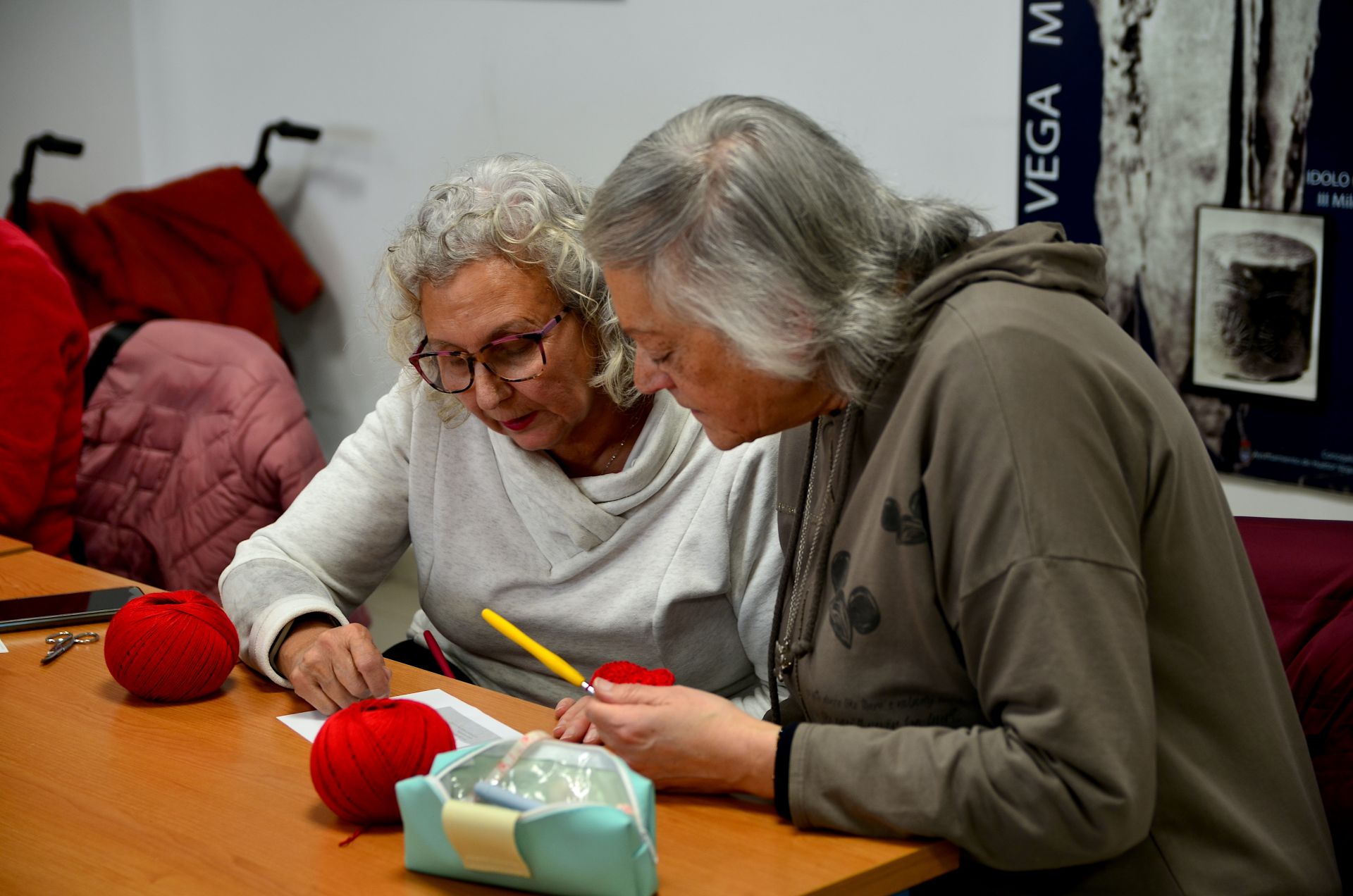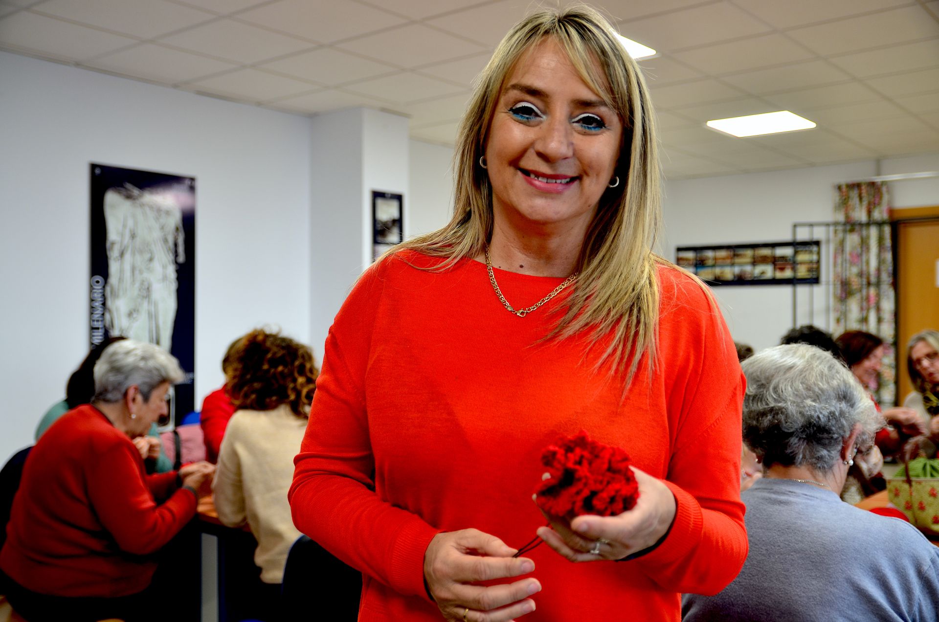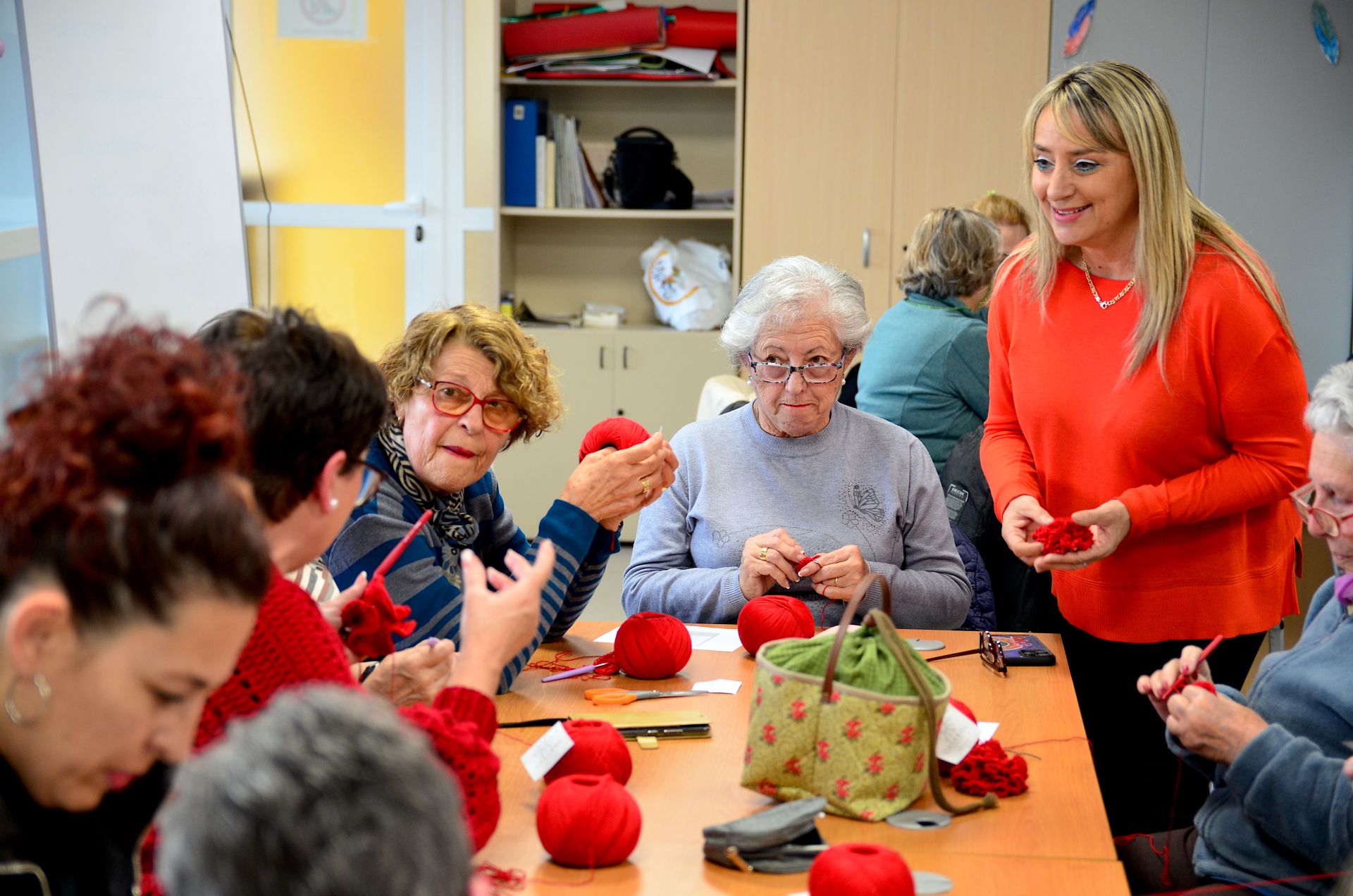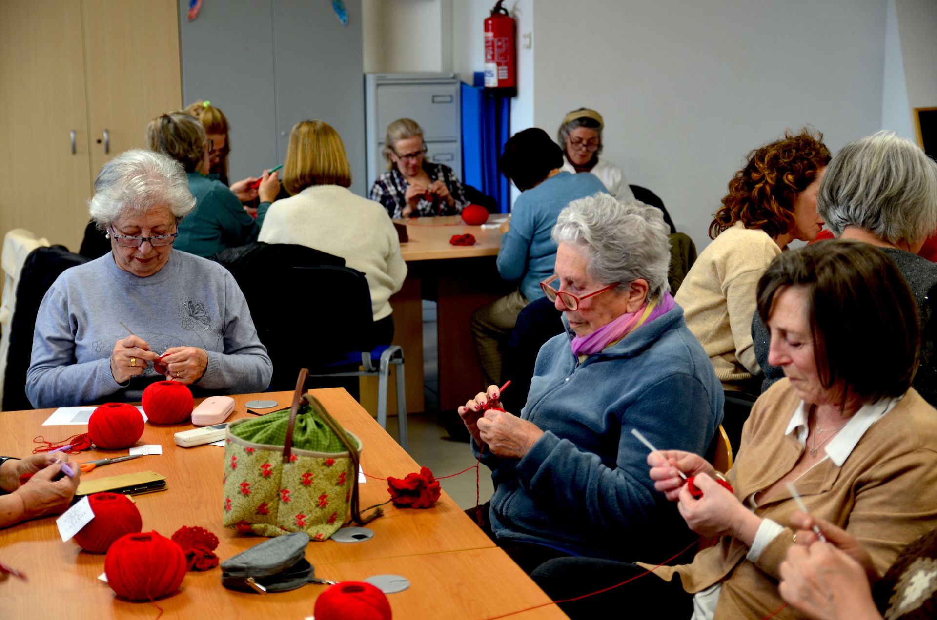 Una veintena de mujeres participan en el taller, dentro de la programación del 8M, del que saldrán los elementos de ganchillo