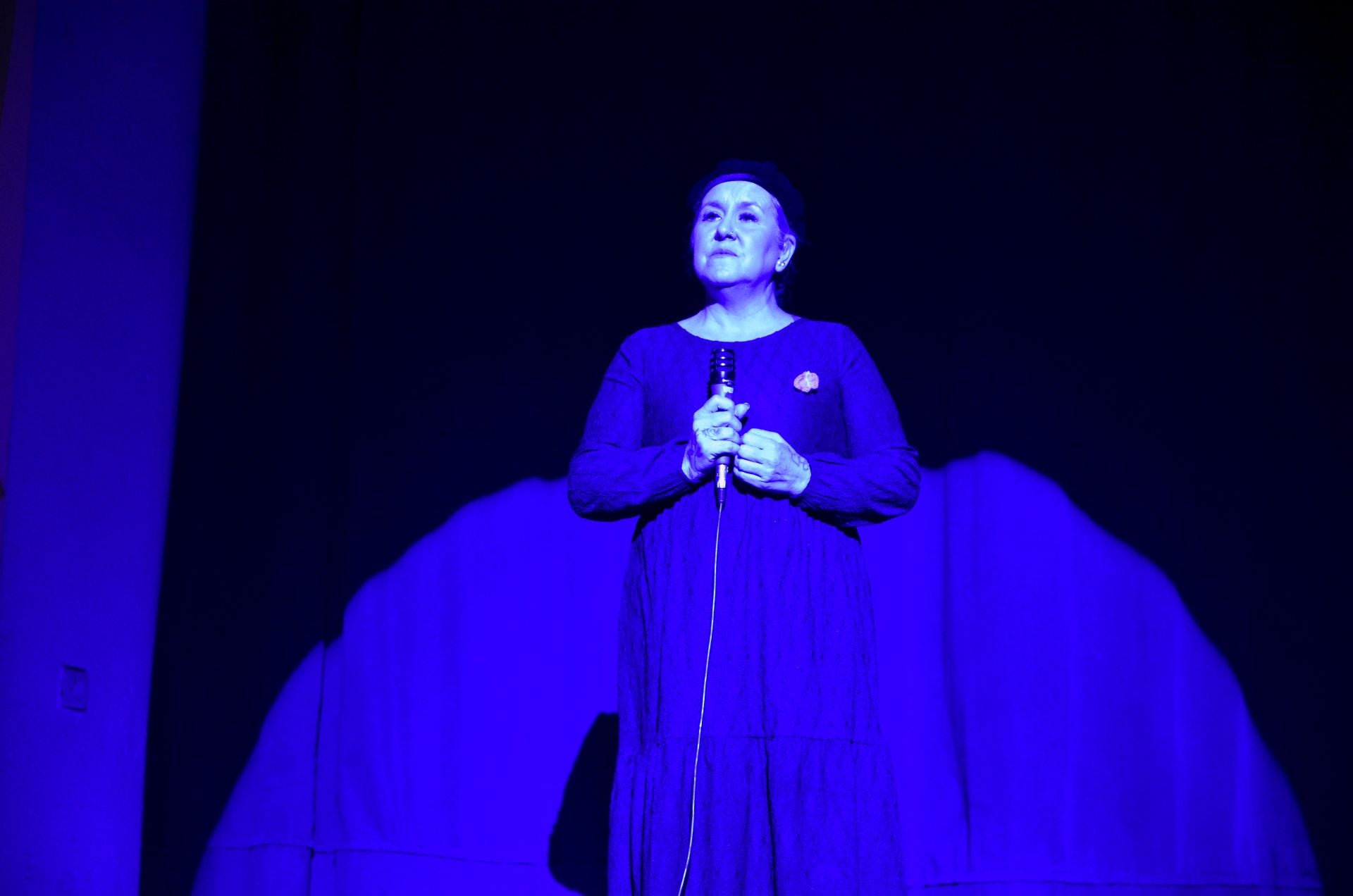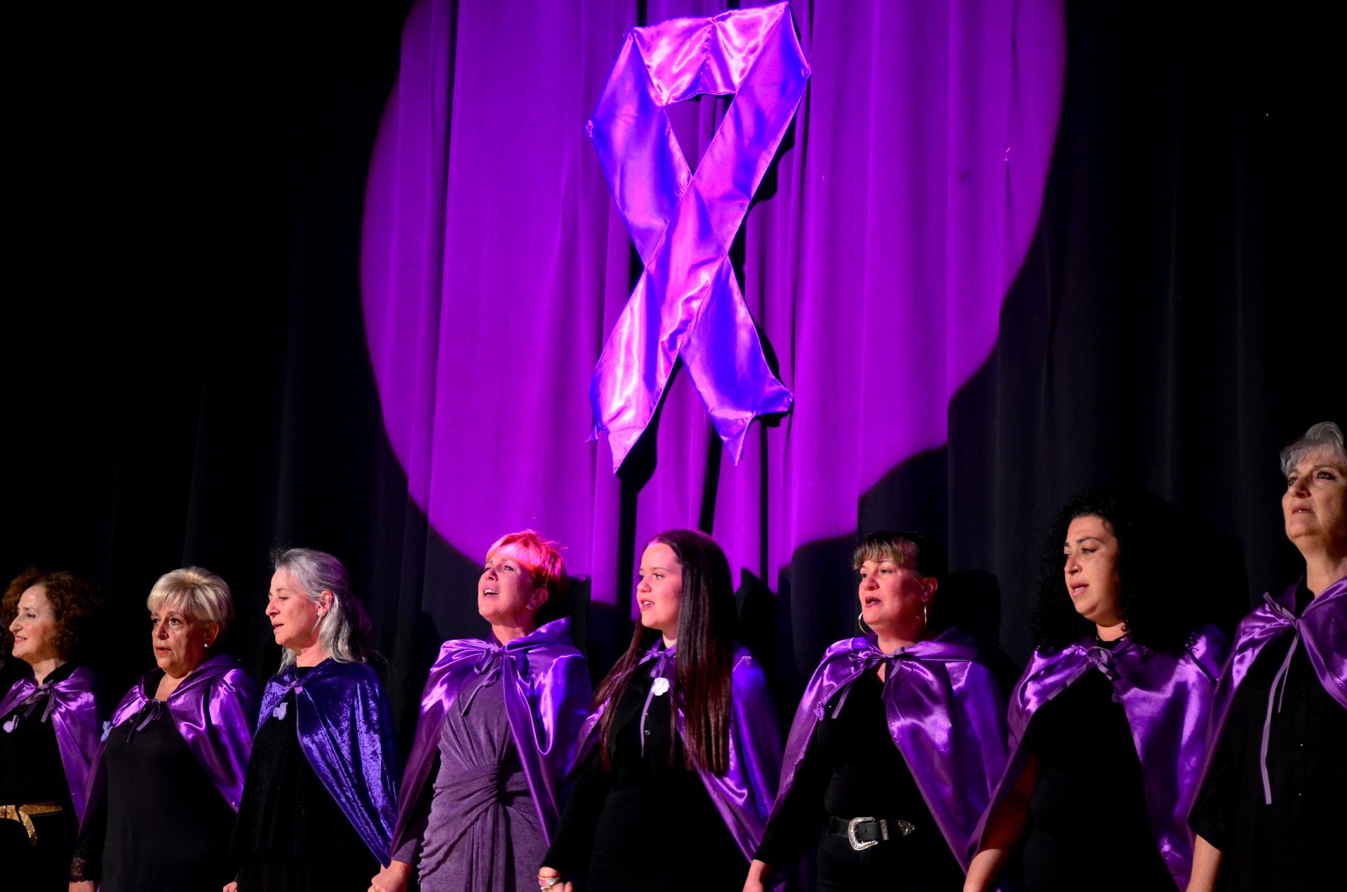 Hubo monólogos sobrecogedores, representados en intimidad con velas al pie del escenario. Relatos tremendos, basados en situaciones reales, como el de la mujer de 55 años que creía que «amar da derecho a dañar». También sonaron y se evocaron canciones conectadas con esta temática, como 'Salir corriendo' (de Amaral), 'La puerta violeta' (Rozalén) o 'María se bebe las calles' (Pasión Vega). Entre ellas destacó el rescate de 'Comprada', tema valiente que interpretaba Marisol (cuando empezaba a ser Pepa Flores) en una España que salía de la Transición, dentro del reivindicable álbum 'Galería de perpetuas. Canciones para mujeres'.