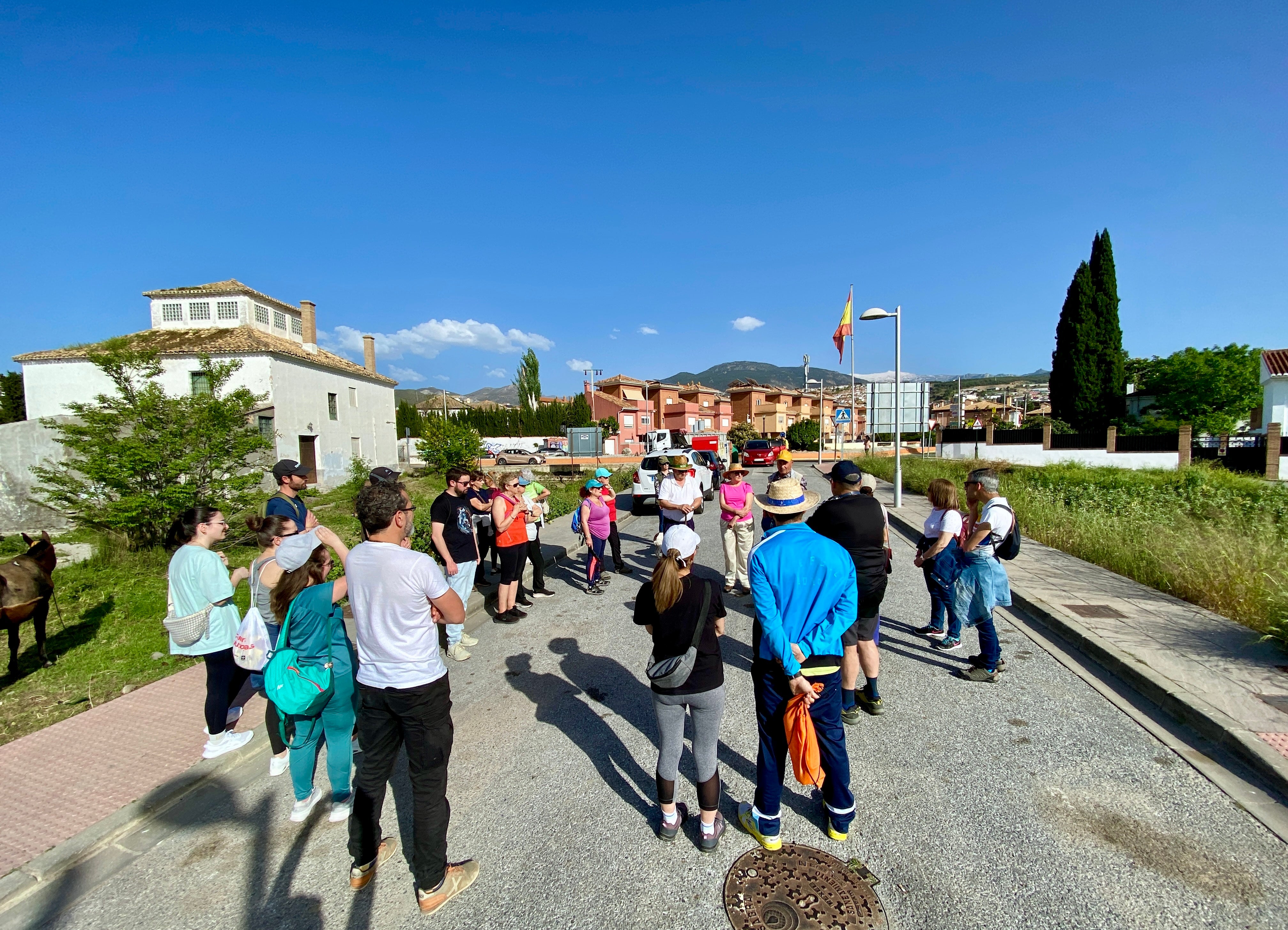 Las personas participantes (unas de Huétor Vega y otras de fuera) surcaron, sobre todo, la parte de la vega hueteña. Un recorrido que ilustra el prestigio de las habas y (en los últimos tiempos) también las alcachofas de este pueblo. Y que a su vez descubre la herencia de un pasado de vaquerías y secaderos. En este sentido, captó la atención el alcalde de Huétor Vega, Mario del Paso, cuando aprovechó para explicar futuras soluciones, como la creación de un paso bajo la carretera entre el Paseo de la Estrella y el nuevo sendero, que comunicará de forma segura a los peatones entre la vega y el núcleo urbano del municipio.