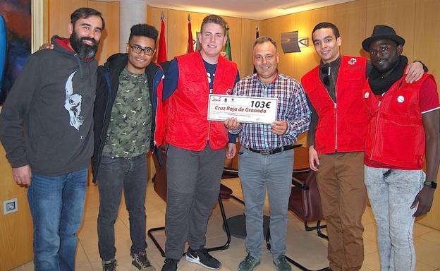El alcalde de Huétor Vega, Mariano Molina, junto al técnico de Juventud, Felipe Velázquez, han entregado en nombre del Ayuntamiento a Cruz Roja la recaudación ... en barra obtenida en el concierto solidario contra el sida, celebrado el pasado 30 de noviembre en el Carmen de San Rafael, donde tuvo lugar un homenaje a Fito & Fitipaldis.