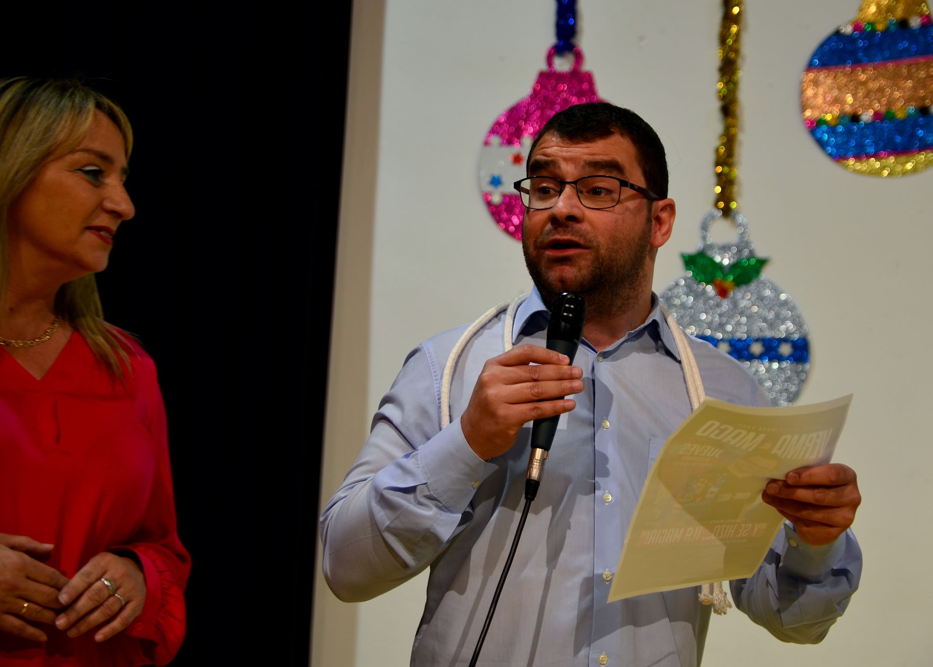 En el acto, celebrado en el Centro Social La Nava, también se entregaron los premios del no menos tradicional concurso de postales navideñas dirigido a los escolares. Por parte del CEIP Mariana Pineda subieron al escenario Adrián, Marcos, Claudia, Bruno, José Miguel y Alexandra, mientras que en representación del CEIP Nuestra Señora de las Angustias lo hicieron Cloe, Andrea, Oliver y Daniel, además del pequeño Guillermo, autor de la postal ganadora que ha servido de imagen del díptico con la programación municipal de Navidad este año.