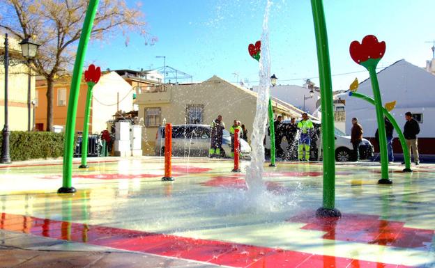 La instalación, única por sus características en el cinturón de Granada, ha supuesto una inversión de 81.000 euros y estará a pleno rendimiento durante los meses de más calor. El resto del año funcionarán solo algunos chorros, como una fuente ornamental.