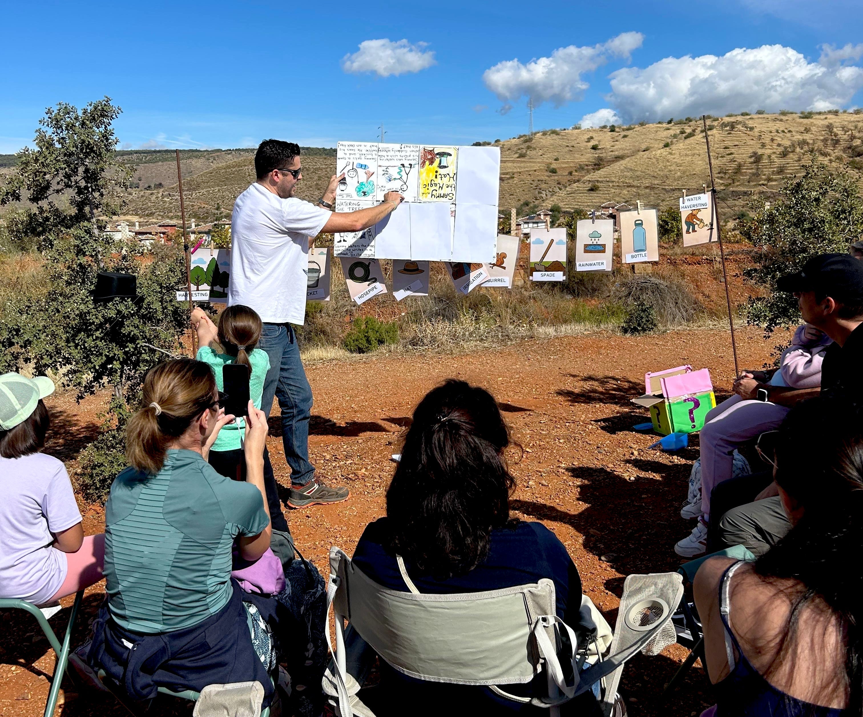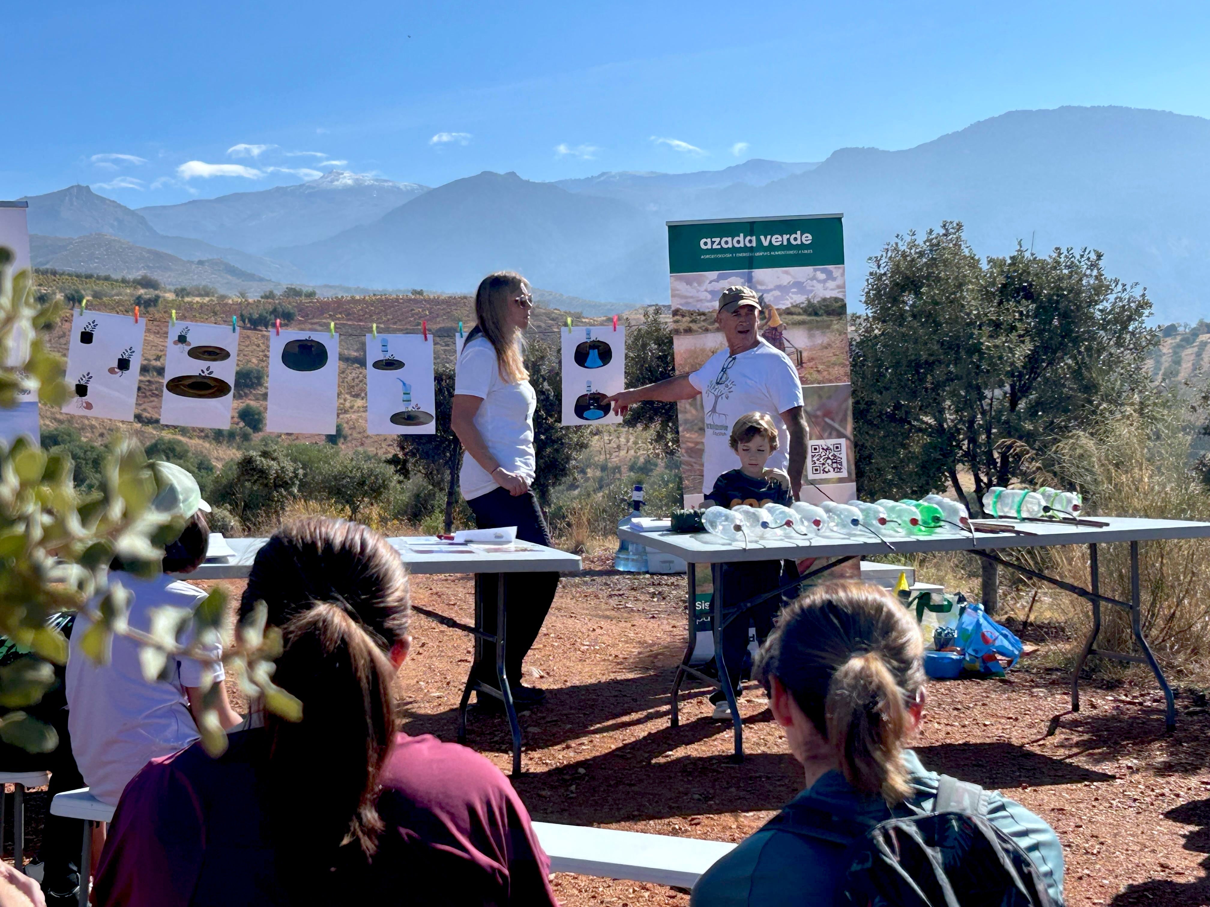 Los más pequeños disfrutaron de actividades y juegos en la lengua anglosajona. También se impartió un taller de sistemas de riego con botellas, con la colaboración de la oenegé Azada Verde. El público participante compartió, a su vez, un almuerzo en la naturaleza.
