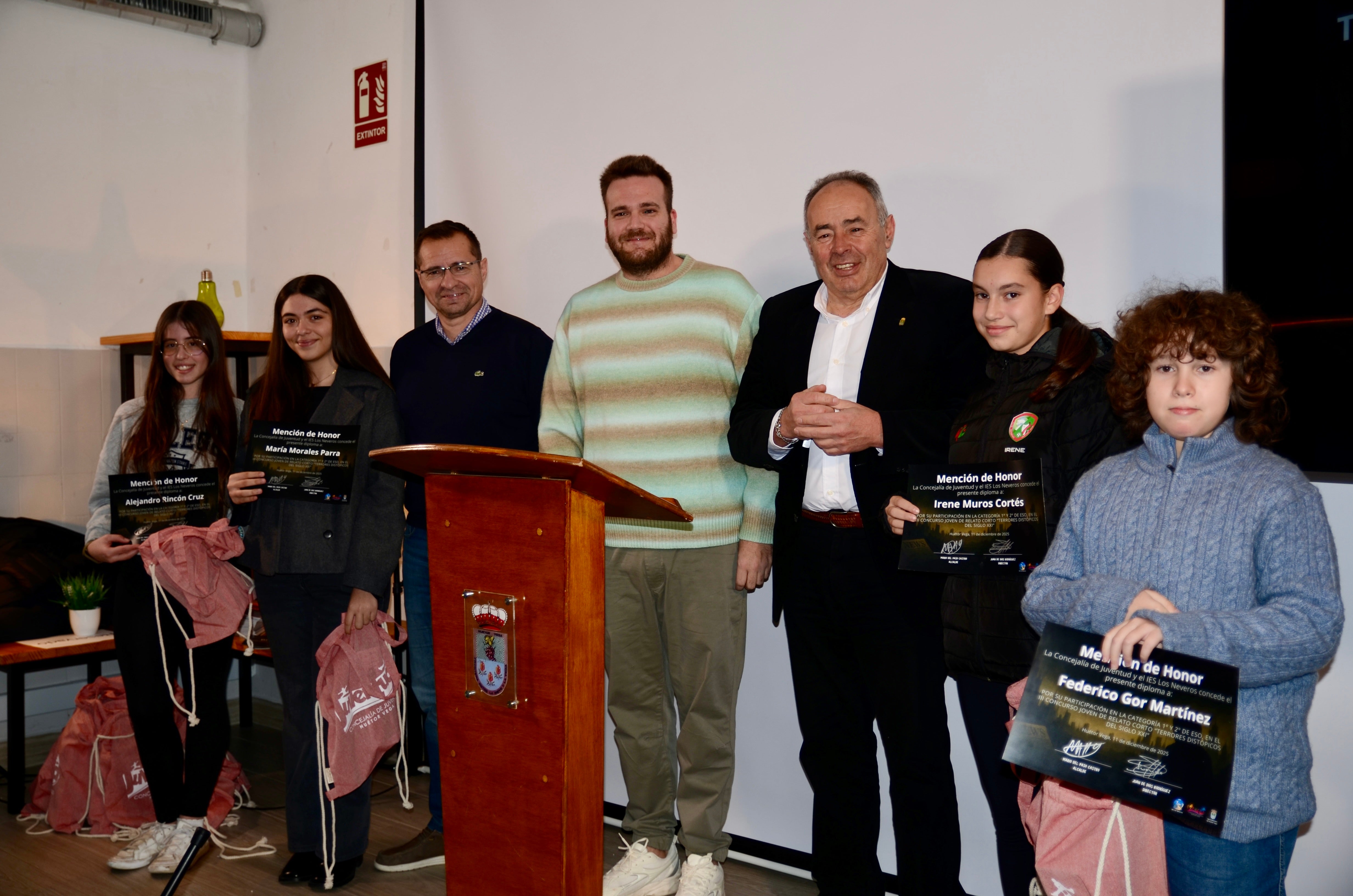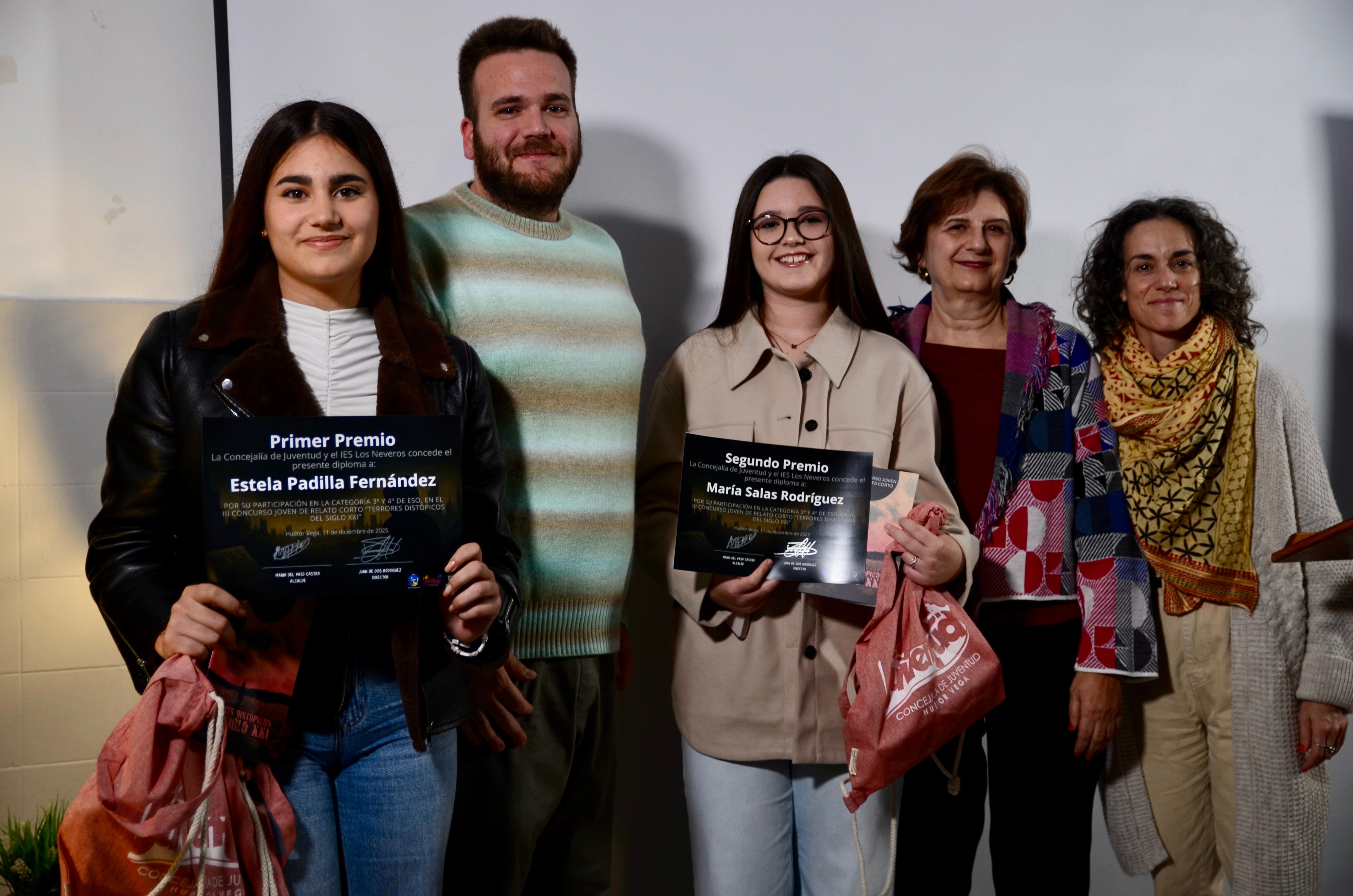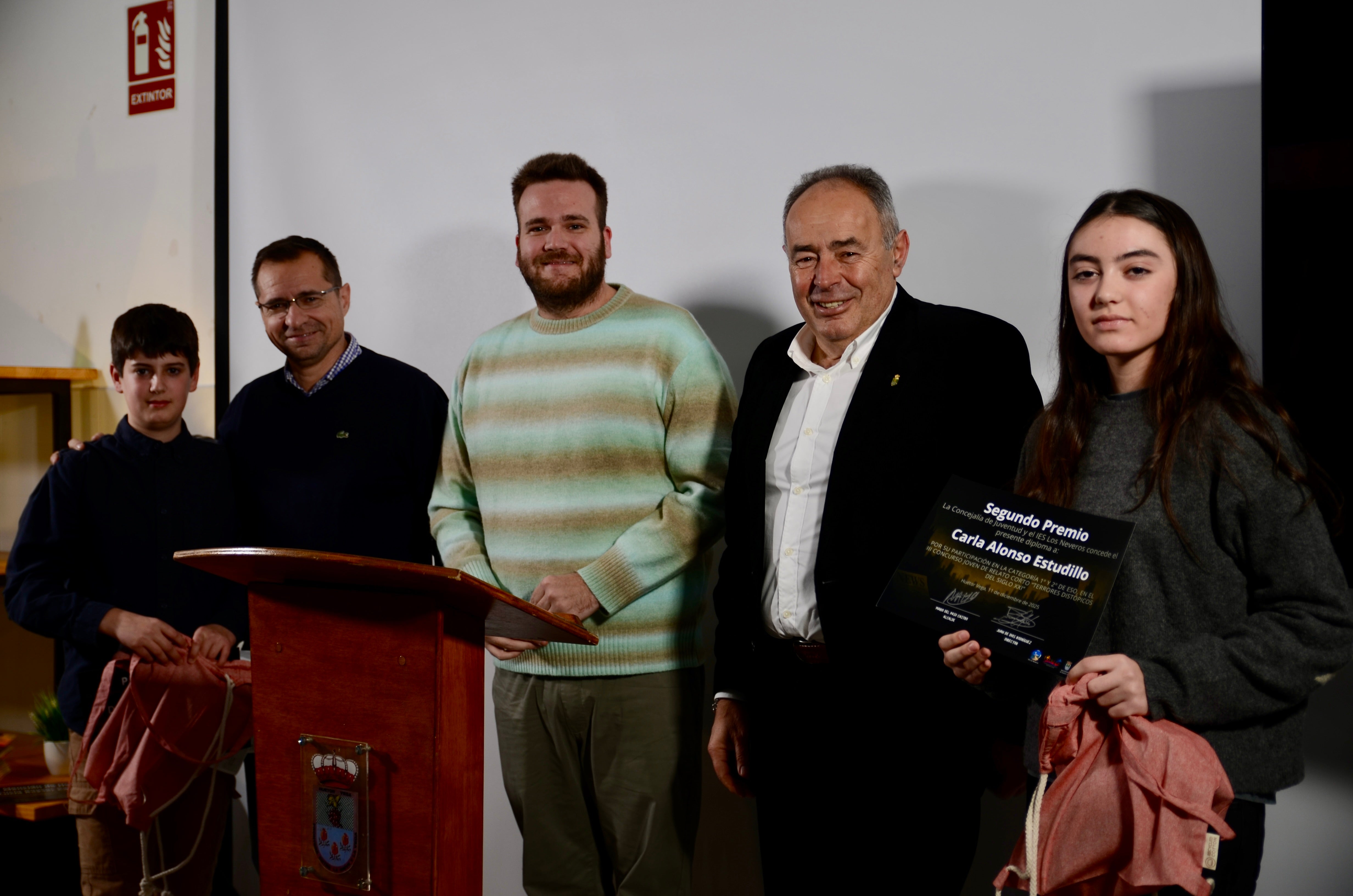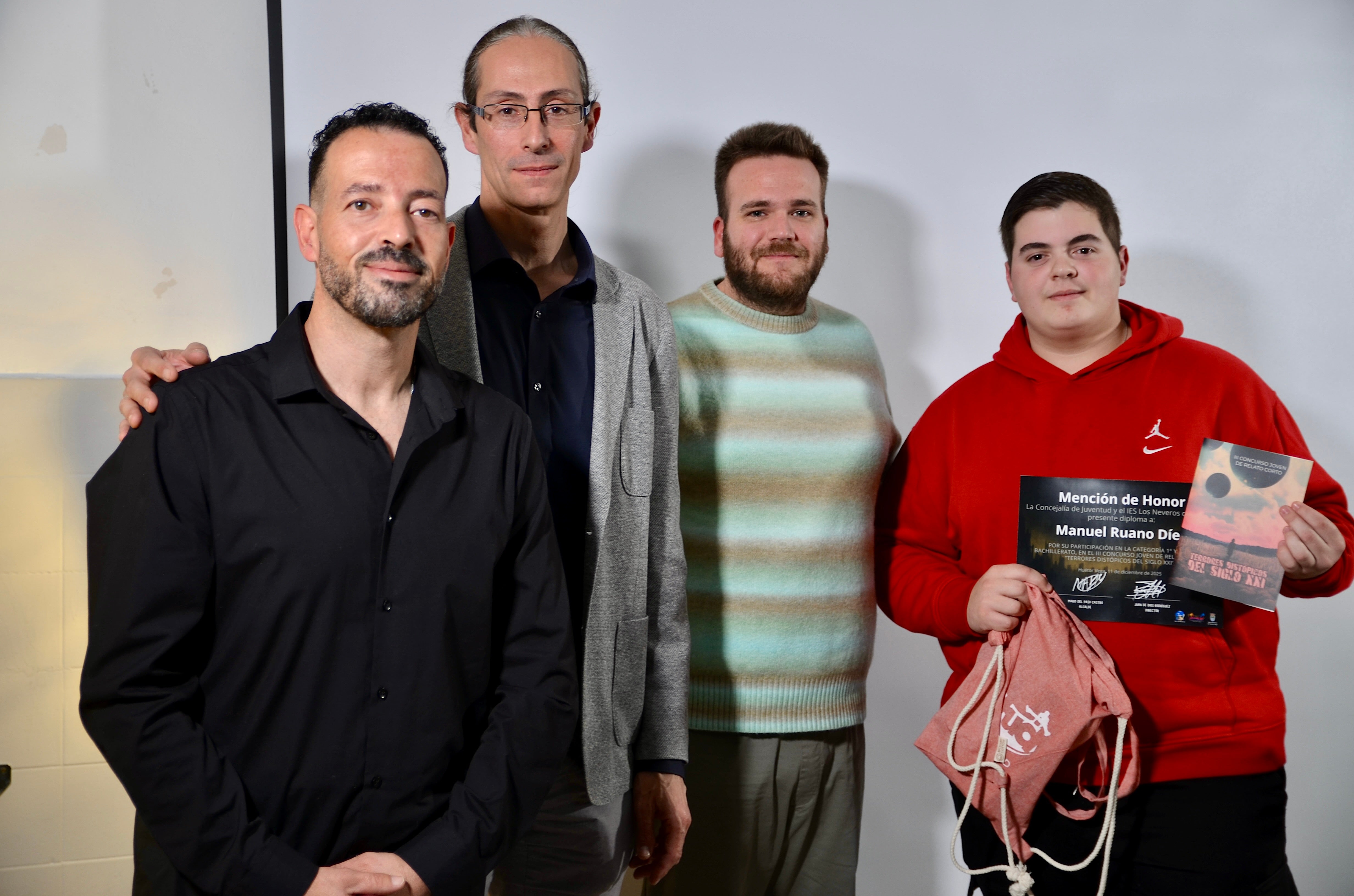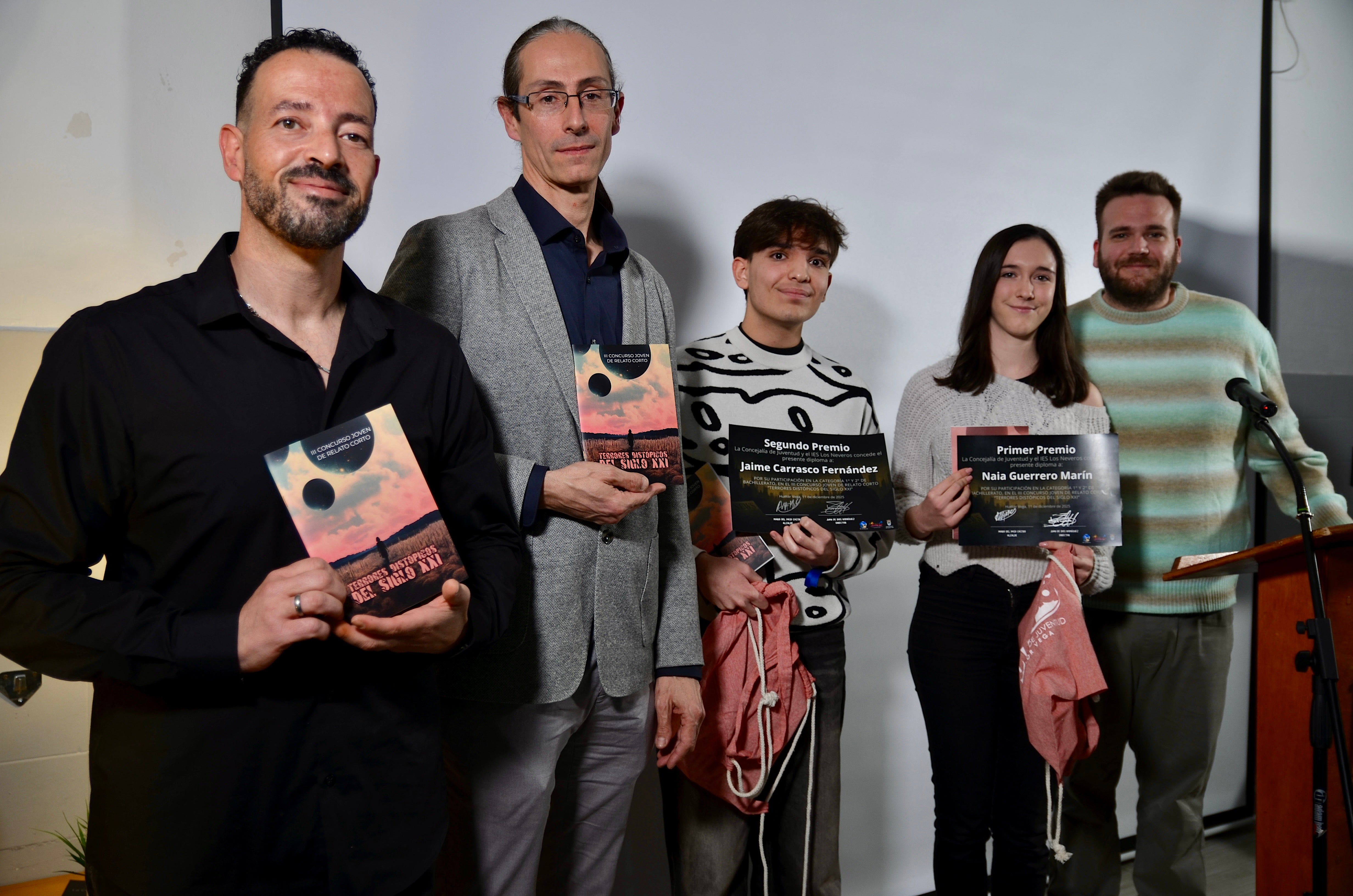El Espacio Joven de Huétor Vega acogió este jueves por tarde el acto de entrega de premios de la tercera edición del Concurso Joven de Relato Corto, que convocan el Ayuntamiento y el IES Los Neveros bajo el lema 'Terrores distópicos del siglo XXI'. ¿El requisito para participar? Cursar estudios de ESO o Bachillerato, bien en el instituto del municipio o, al menos, siendo residente en la localidad metropolitana.