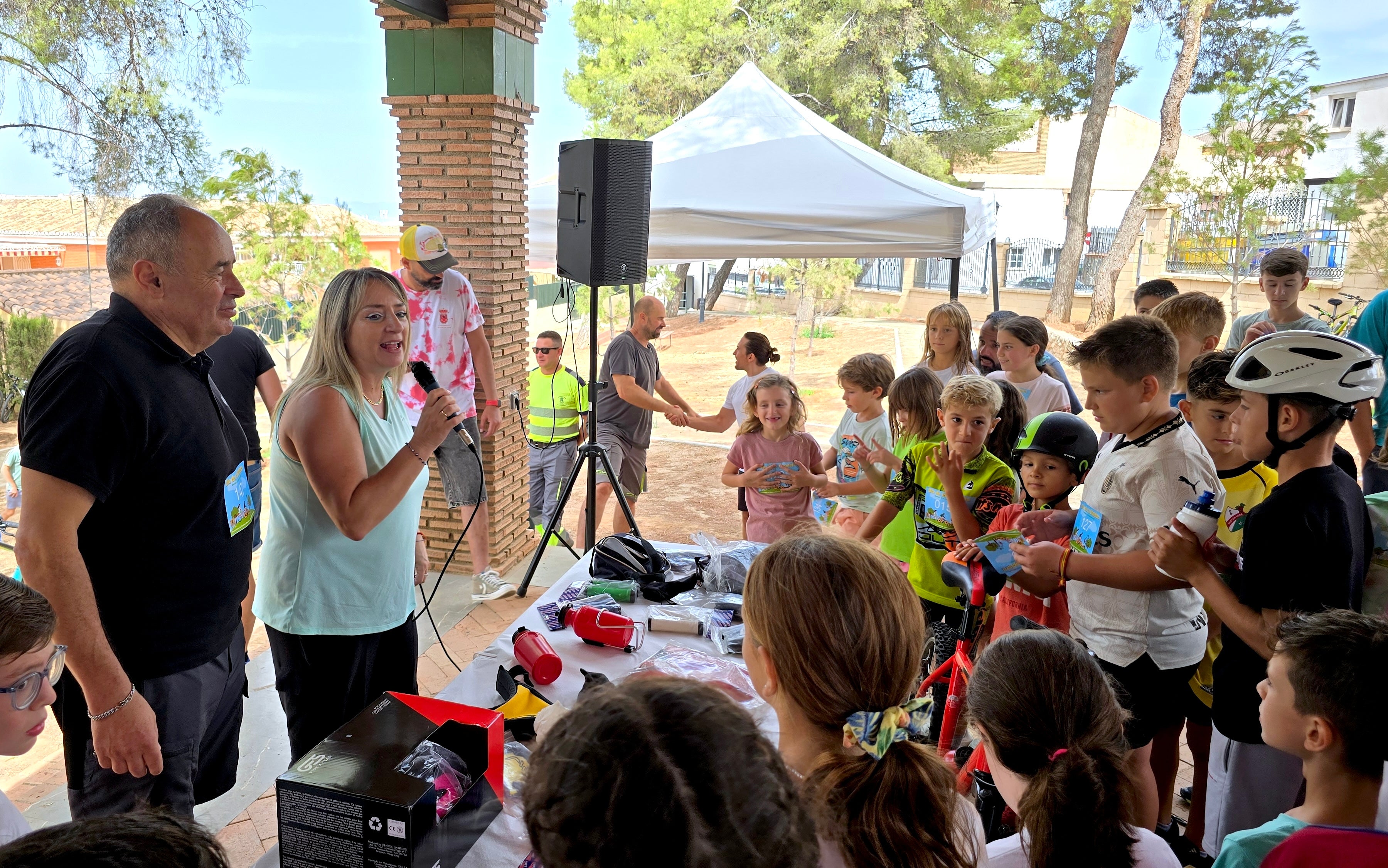 El punto de salida ha sido la Ermita de San Miguel. Tras un recorrido guiado por el municipio, todas las personas participantes han llegado al mediodía al Parque de los Pinos, donde ha tenido lugar el sorteo de una bicicleta y de material deportivo. Después, barbacoa con precios populares en la barra servida por la Comisión de Fiestas.