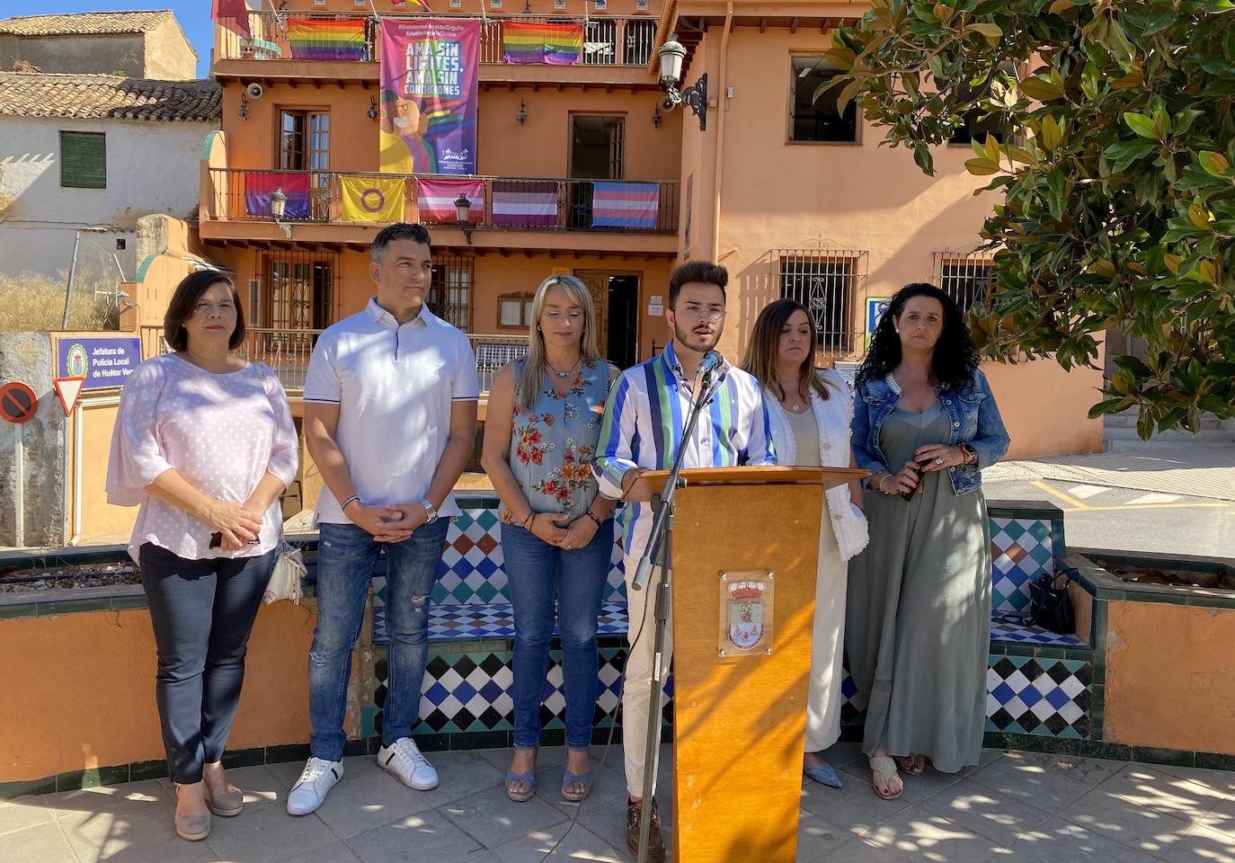 «Me siento feliz y orgulloso de que nuestro Ayuntamiento represente los colores del arcoíris, símbolo del orgullo del colectivo LGTBI. Es difícil poder expresar en unas palabras los sentimientos que las personas vivimos en determinados momentos de nuestra vida. Es complicado explicar las sensaciones que en muchas ocasiones tenemos que sufrir cuando te dicen a la cara o a la espalda cualquier palabra o comentario desagradable a tu persona. Es muy duro sentirse avergonzado en determinadas situaciones sociales o diferentes escenarios de la vida por culpa de aquellos que no entienden la palabra amor», ha apuntado el joven edil del equipo de gobierno hueteño.