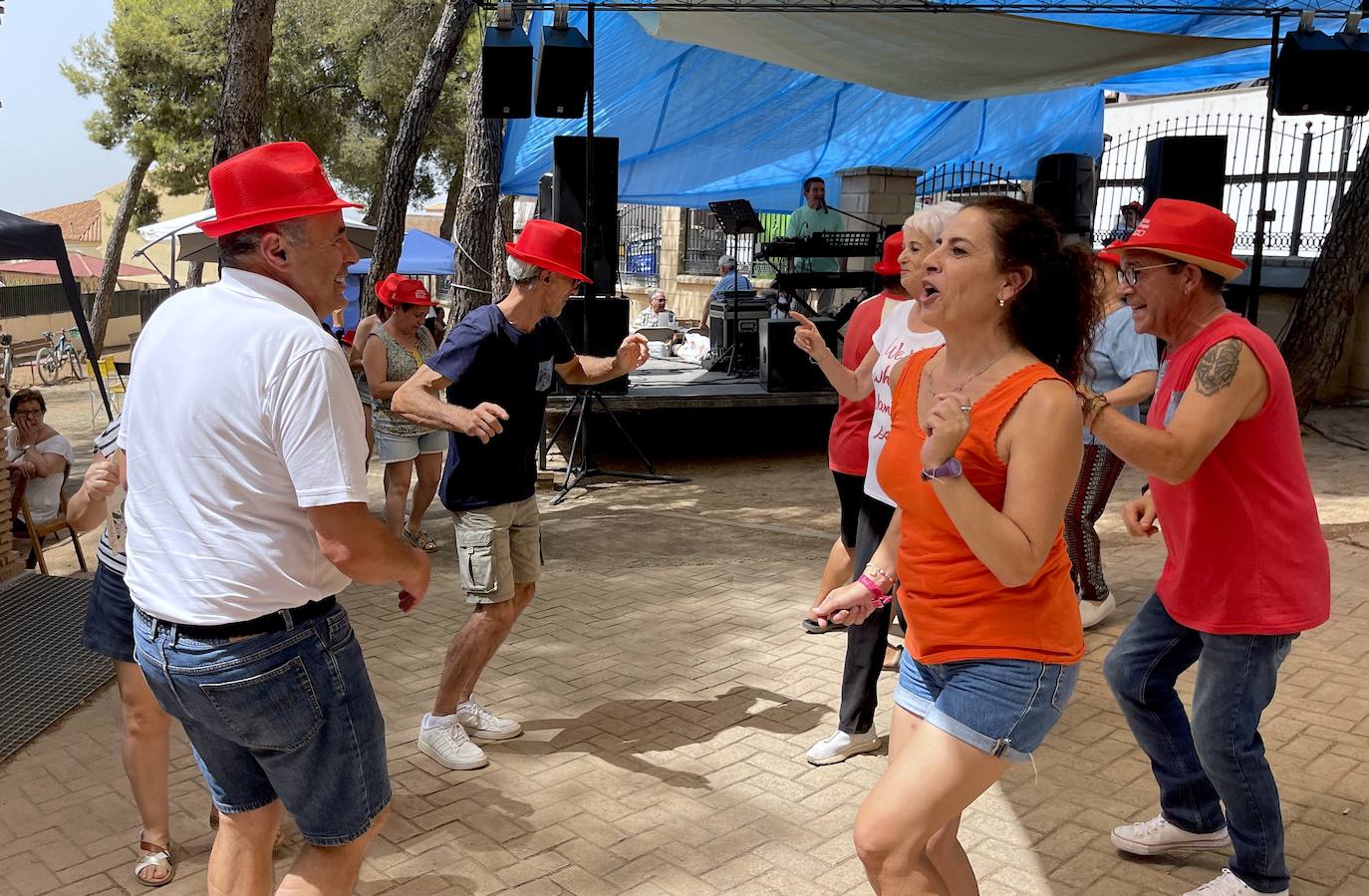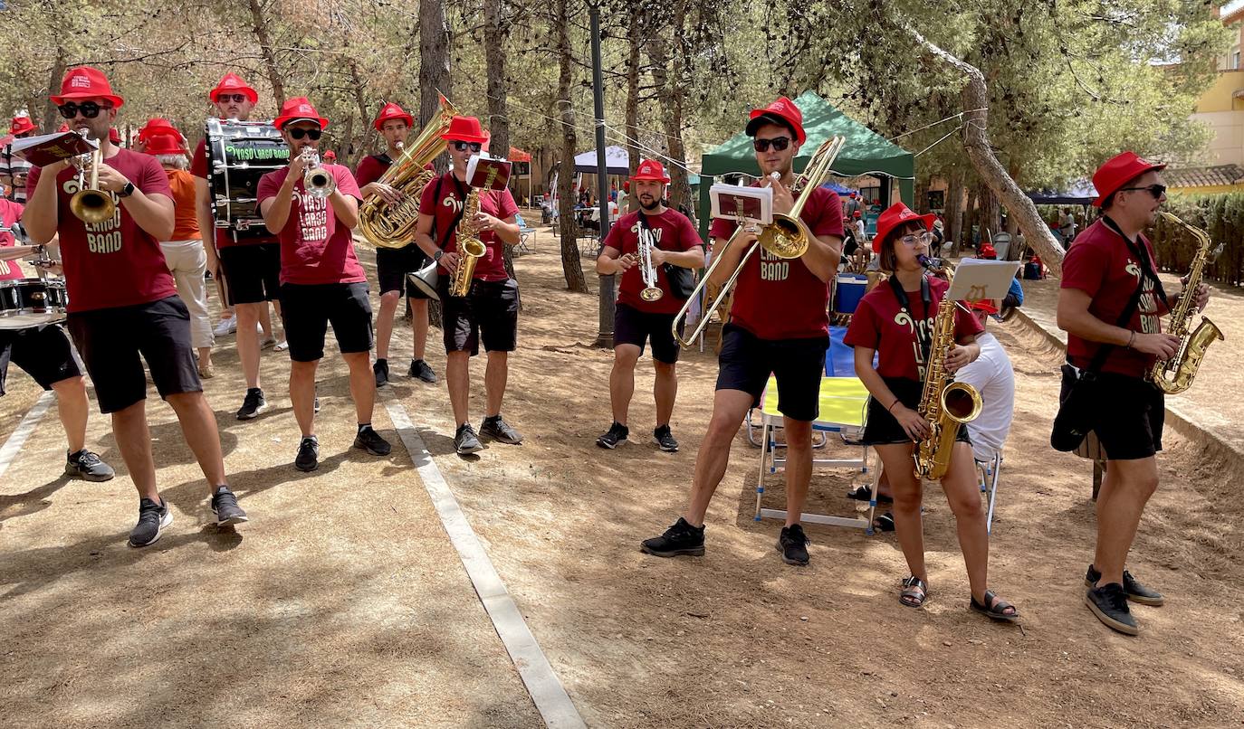 Los sombreros rojos de las Fiestas de San Roque llenaron el parque para protegerse del sol. La Charanga Vaso Largo y McGregor amenizaron el ambiente con música en vivo.
