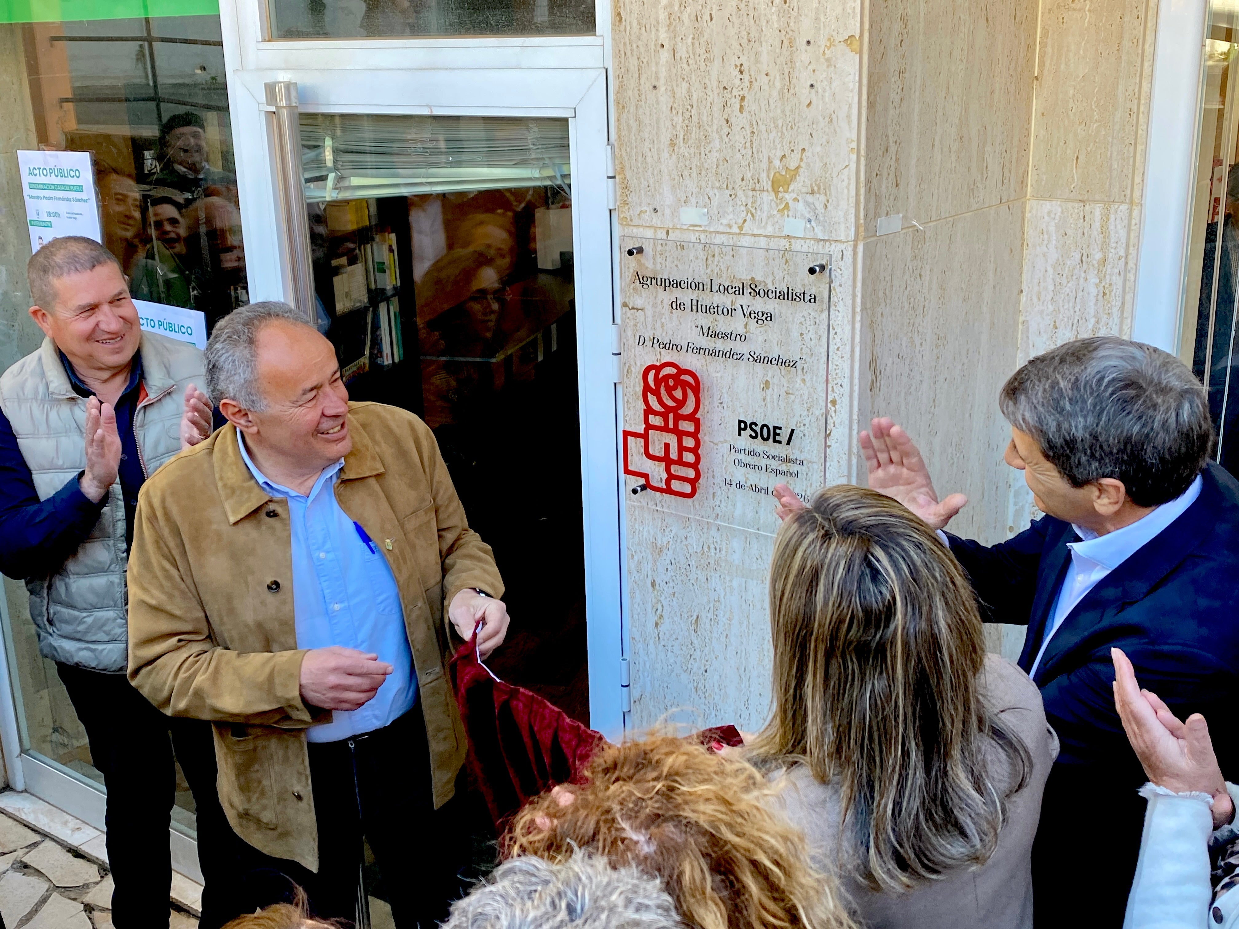 El acto de descubrimiento de la placa contó con la presencia de toda la agrupación del PSOE de Huétor Vega, encabezada por su secretario general en el municipio y alcalde de la localidad, Mario del Paso. También participaron el secretario general del PSOE de Granada, Pedro Fernández; la vicesecretaria general del PSOE de Andalucía, María Márquez; y el secretario general de Juventudes Socialistas de Andalucía en Granada, Jorge Ibáñez, además de numerosas personalidades del socialismo granadino.