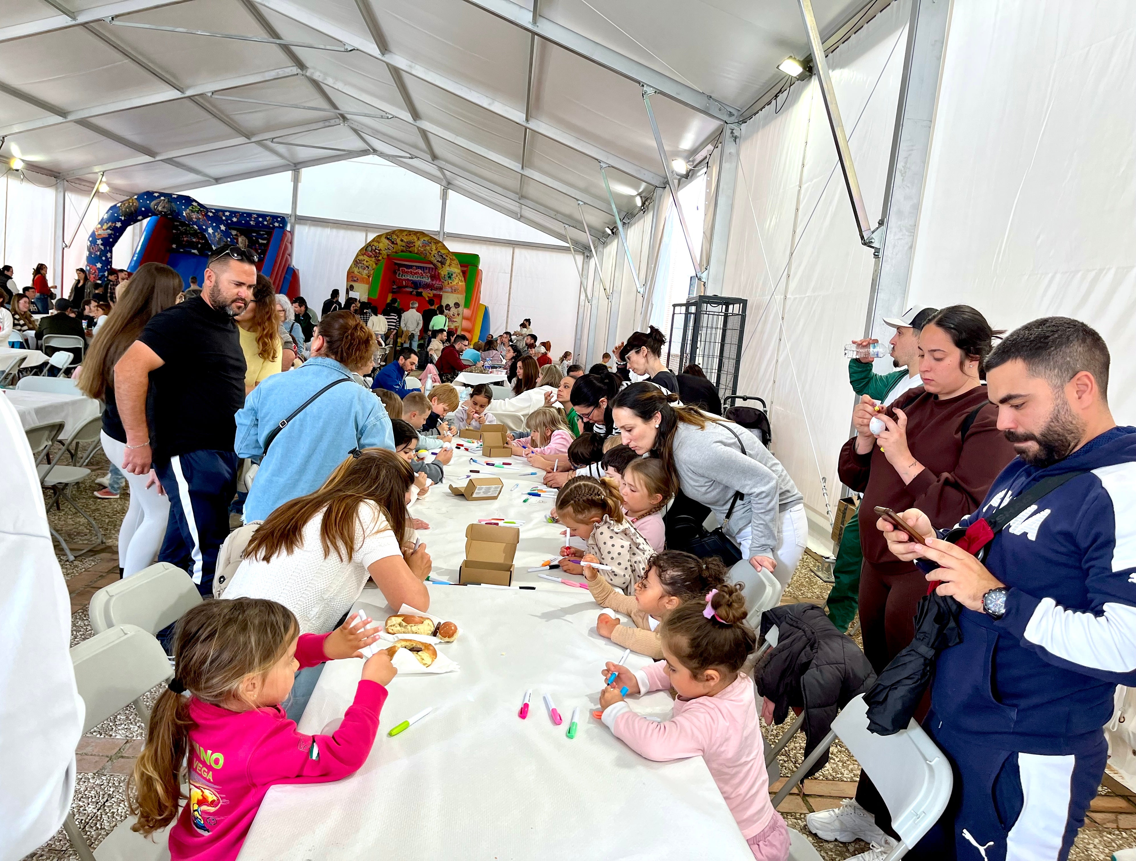La Concejalía de Fiestas del Ayuntamiento de Huétor Vega organizó el pasado sábado la tradicional merienda para 'roar el güevo', una costumbre muy arraigada en ... el municipio metropolitano que suele coincidir con la festividad de San Marcos. Su emplazamiento habitual es el Parque de los Pinos, pero la presencia de la lluvia propició el traslado de la actividad a la carpa municipal de Huerta Cercada, donde numerosas familias saborearon los hornazos con chocolate, realizaron talleres de decoración de los huevos y, por supuesto, los rodaron como hacía antaño la juventud del pueblo. Además, los más pequeños lo pasaron en grande en los hinchables. Todo ello con la entusiasta colaboración de la Comisión de Fiestas.