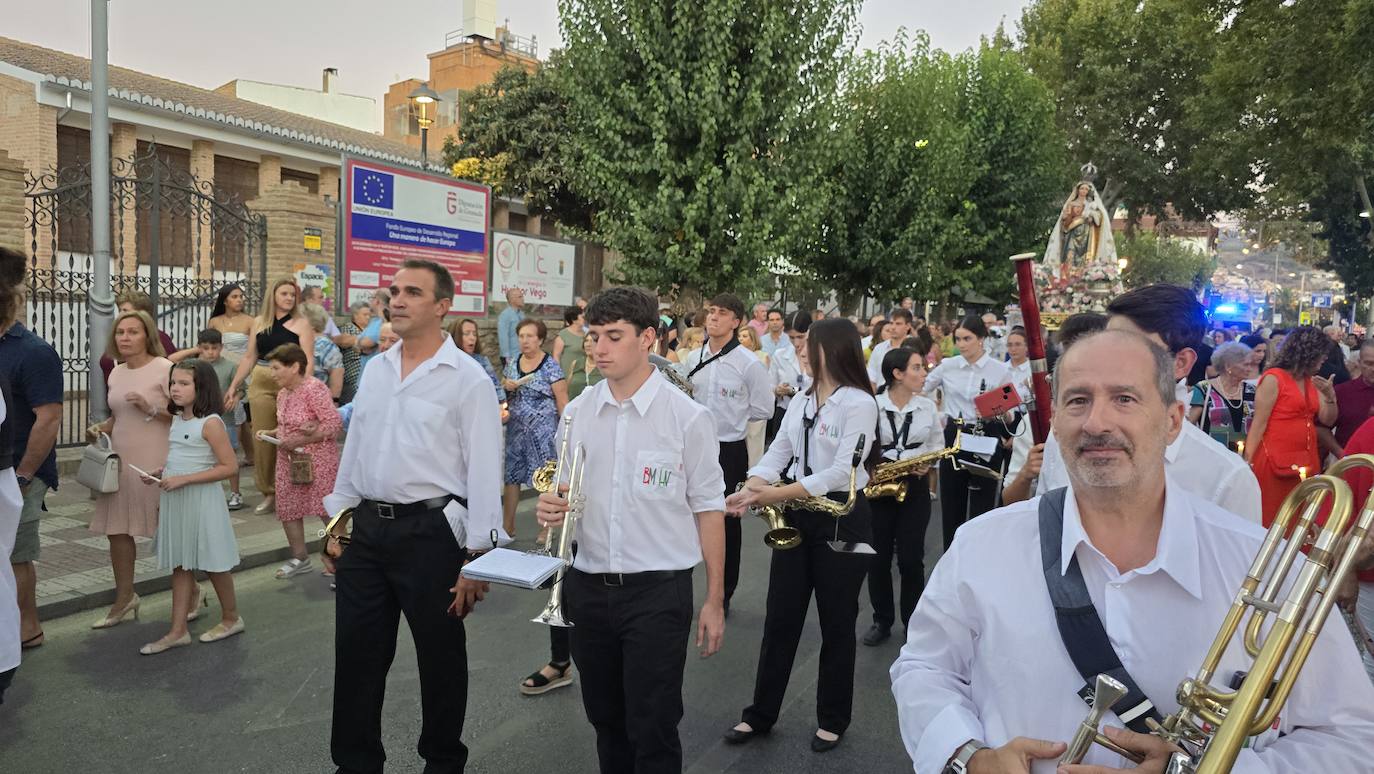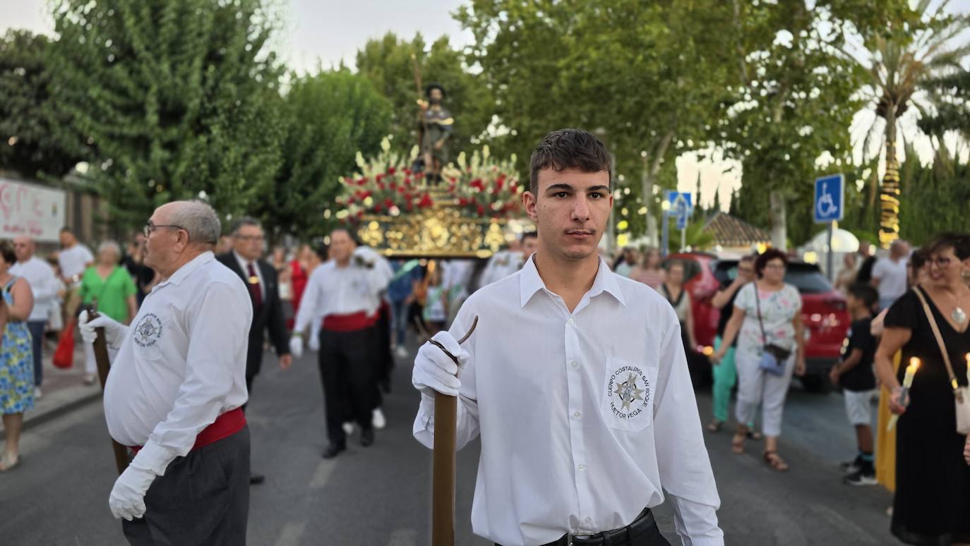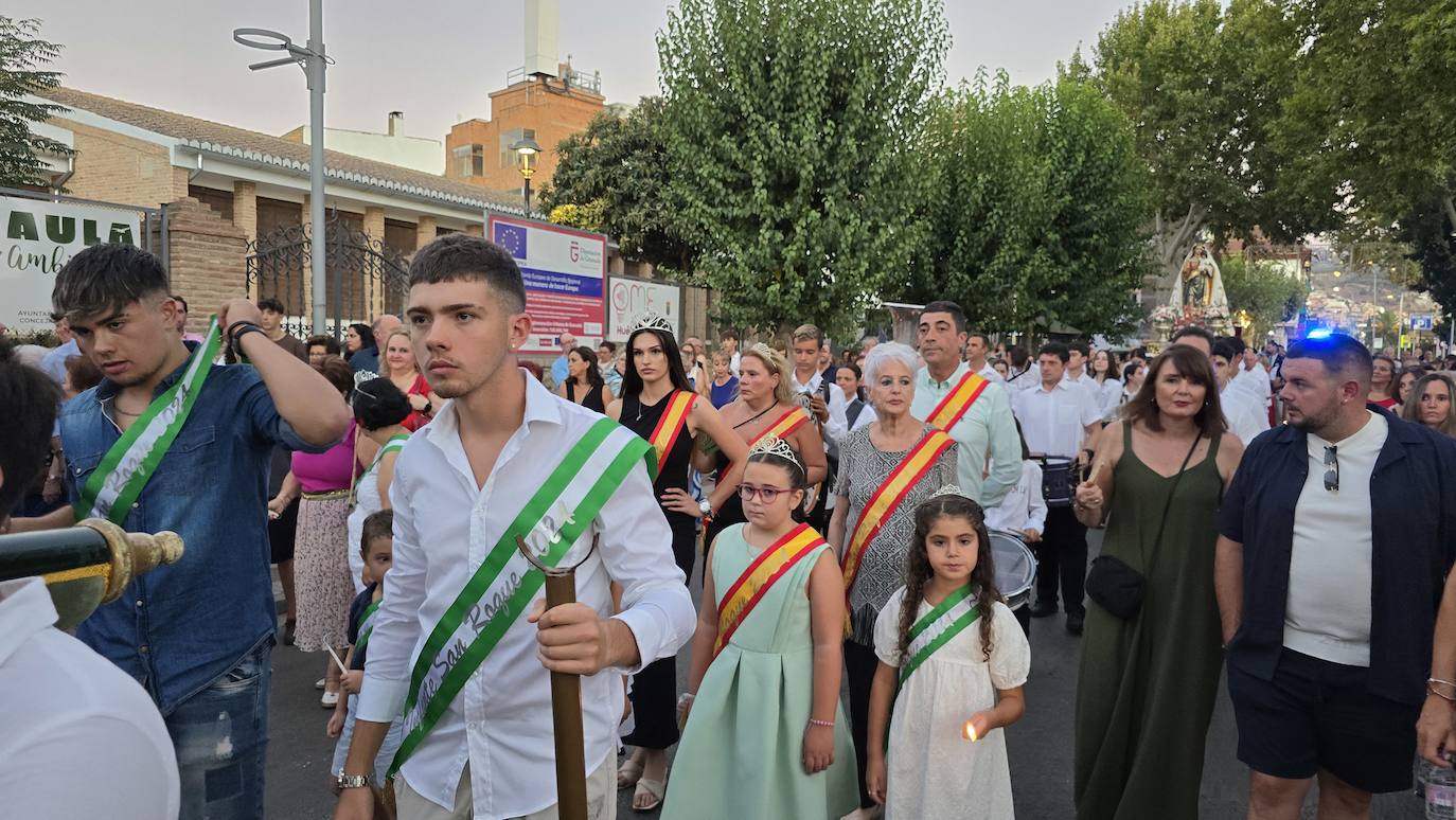 Huétor Vega se ha volcado un año más con la procesión de sus patrones, San Roque y la Virgen del Rosario, inundando las calles del ... municipio al paso de estas dos imágenes. Como manda la tradición, la comitiva estuvo encabezada por el párroco del municipio, acompañado por miembros de la corporación municipal, las 'misses' y los 'míster' de las distintas franjas de edad en las fiestas, y, la Banda de Música de Huétor Vega.