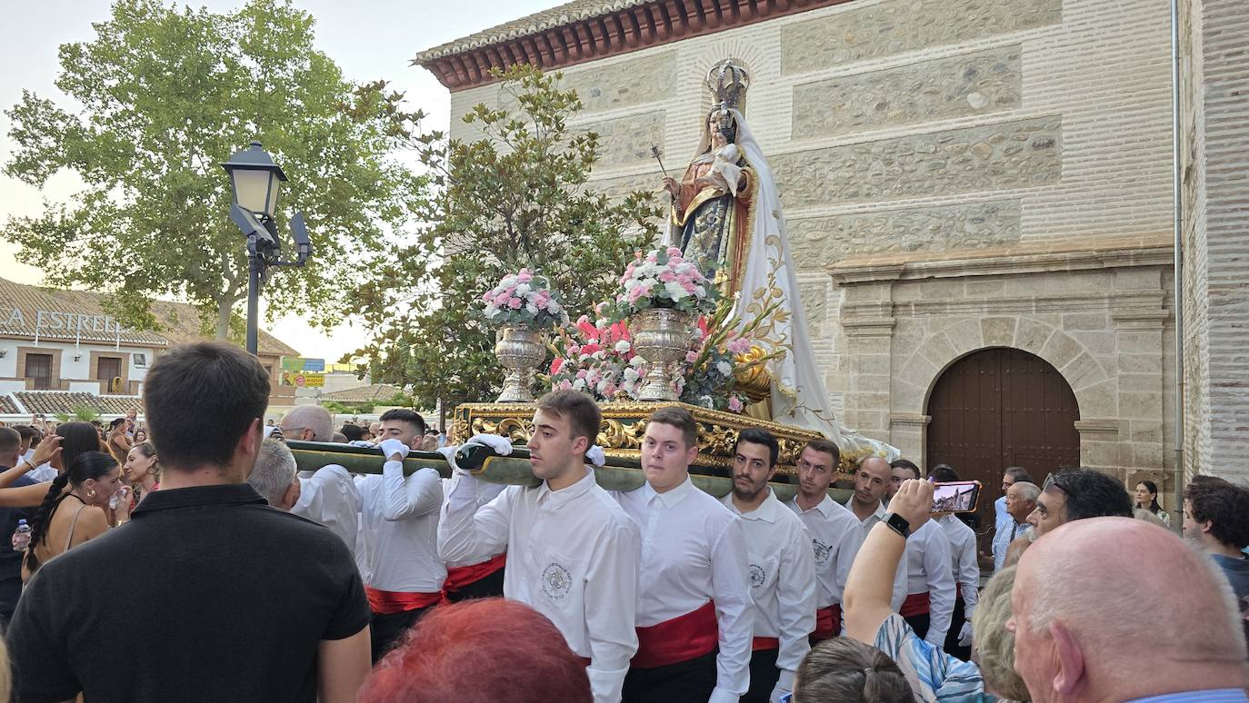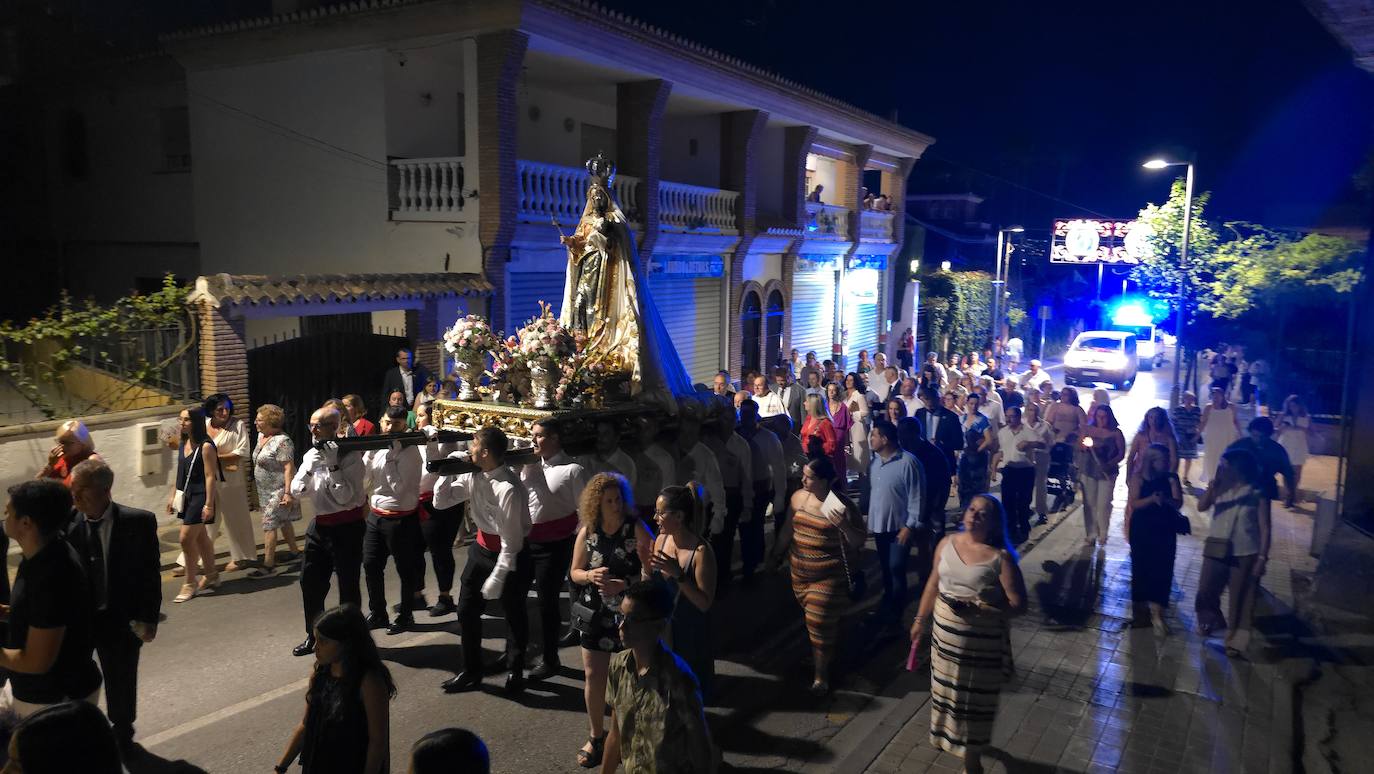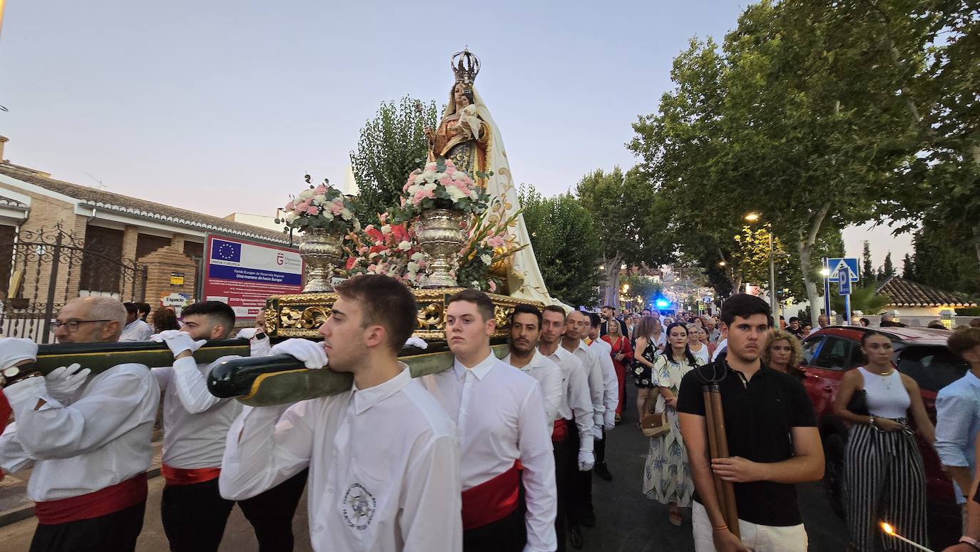Huétor Vega se ha volcado un año más con la procesión de sus patrones, San Roque y la Virgen del Rosario, inundando las calles del ... municipio al paso de estas dos imágenes. Como manda la tradición, la comitiva estuvo encabezada por el párroco del municipio, acompañado por miembros de la corporación municipal, las 'misses' y los 'míster' de las distintas franjas de edad en las fiestas, y, la Banda de Música de Huétor Vega.