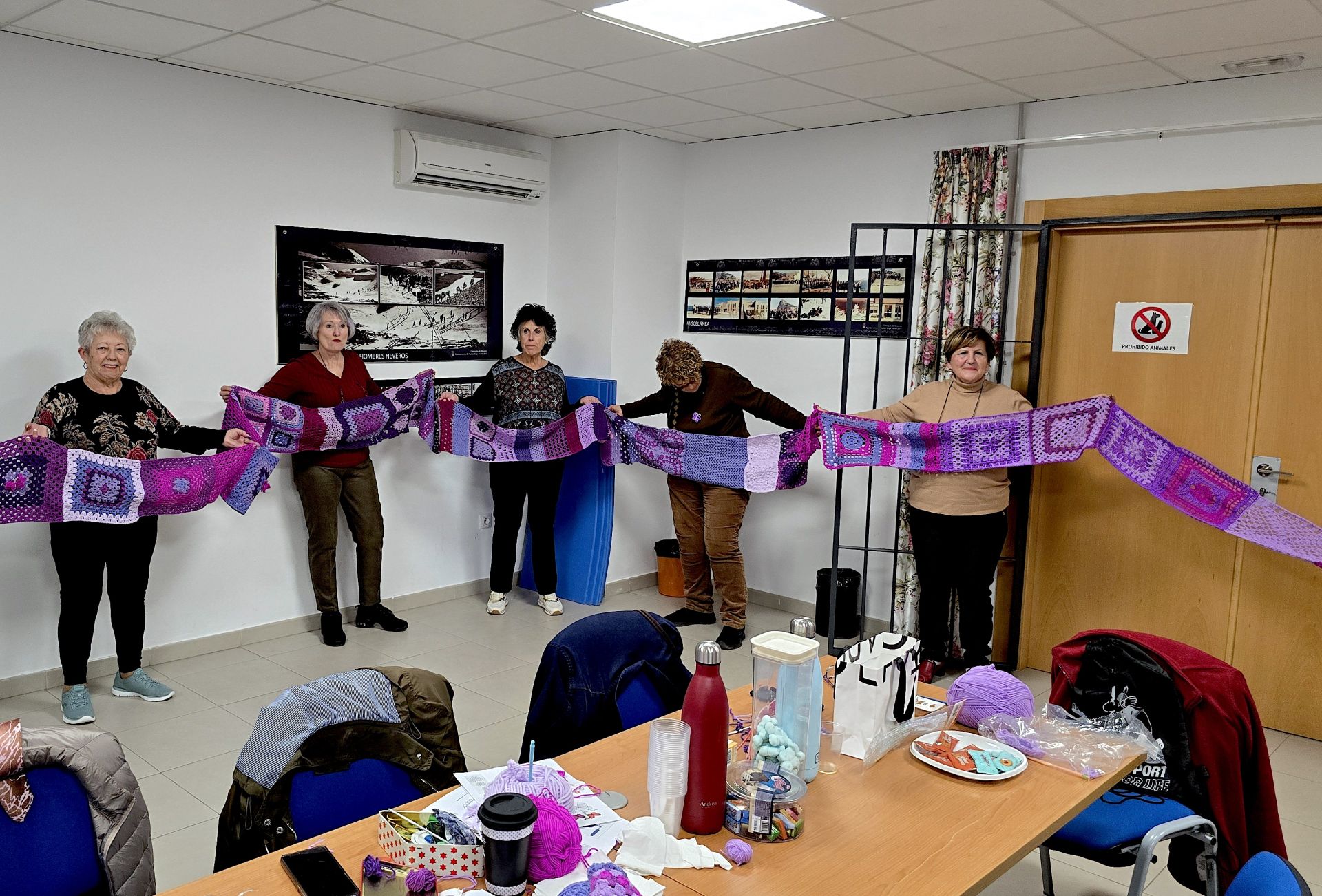 Una veintena de mujeres teje una bufanda de 34 metros por el 25N en Huétor Vega