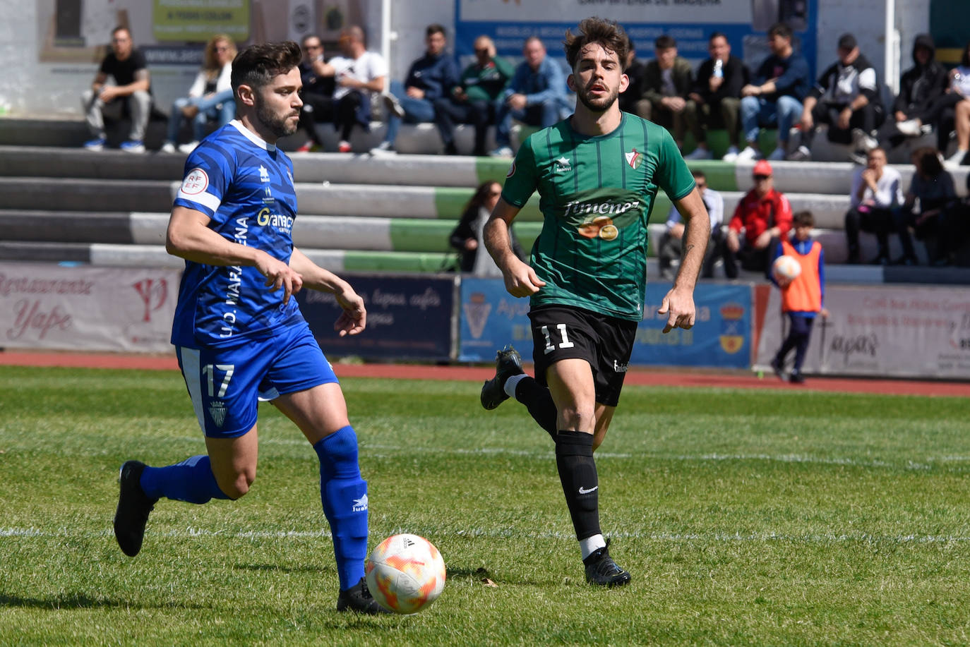 En el segundo periodo se produjo una una jugada similar. Penalti: Dani Salvatierra sumó el segundo para el equipo de 'Rizos'. Los hueteños controlaron el encuentro hasta el final, pero con el tiempo de prolongación ya cumplido Rubén anotó para el Maracena en una jugada a balón parado. El partido estaba acabado, pero el colegiado dejó dos minutos más, suficientes para que el Maracena pudiera igualar en la última acción del encuentro.