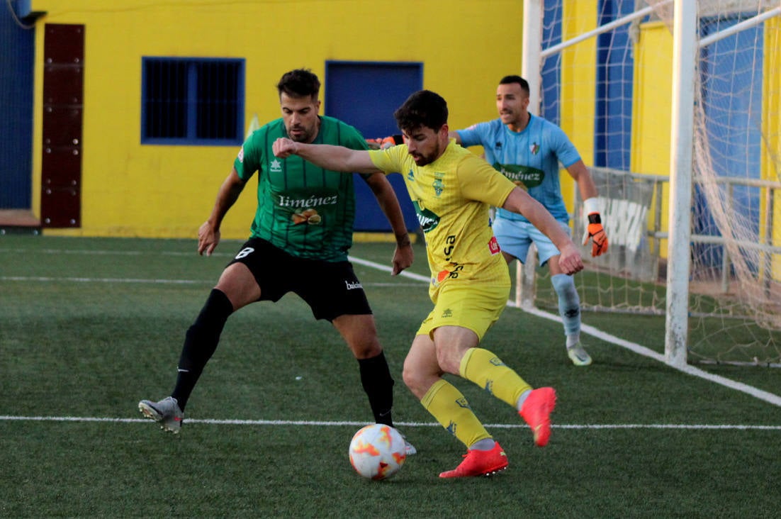En Huétor Tájar, el enfrentamiento no pudo empezar mejor para los locales, pues a los seis minutos Manu Daza enganchaba una volea en el área tras un centro desde la izquierda y batía a Jorge por alto. Los de Thierry Pérez perdonaron incomprensiblemente tres minutos después el 2-0 tras un pase de Jordi que Juanan Entrena envió fuera cuando el gol parecía lo más fácil.