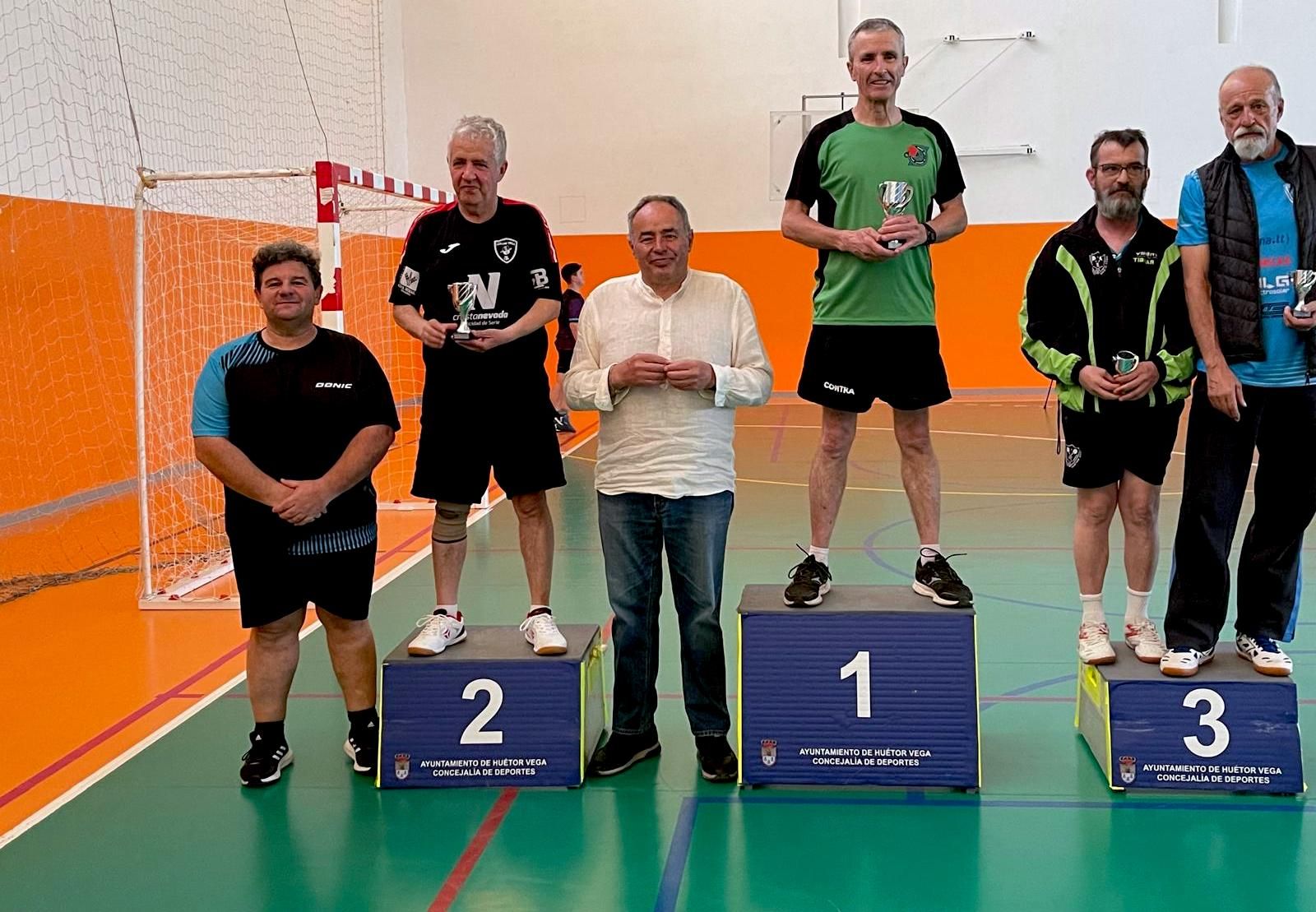En categoría veteranos de 60 se llevó el título Restituto Pérez (CTM Alhendín); la segunda plaza fue para Rafi Rivero (CTM Cúllar Vega), y los dos terceros puestos fueron para Arturo Gómez (del Huétor Vega) y Joaquín Sánchez (CTM Albolote). «Los demás jugadores hueteños, desde categoría benjamín a veteranos, cedieron en cuartos de final, y los más pequeños en la fase de grupos, siendo sus primeros campeonatos», apuntan desde el CD Huétor Vega TM. El acto de entrega de trofeos contó con la participación del alcalde de Huétor Vega, Mario del Paso.
