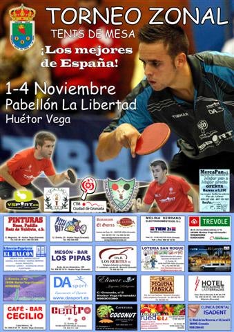 Huétor Vega acogerá, entre 1 y el 4 de noviembre, el Torneo Zonal de tenis de mesa. Concretamente, se disputarán en el Pabellón de la Libertad los partidos clasificatorios para el Campeonato de España correspondientes a la zona 4, que comprende Andalucía, Ceuta, Extremadura y la Región de Murcia. Los mejores palistas de estas regiones se darán cita durante estos días en el municipio para luchar por su plaza. Los 8 primeros de cada categoría (benjamín, alevín, juvenil, sub 23, senior, veterano 40 y veterano 50) se clasificarán directamente para el torneo nacional, que se celebrará en febrero de 2013. Los puestos siguientes podrán participar en un torneo de repesca que se celebrará del 6 al 9 de diciembre de este año.