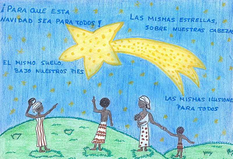 Una postal perfecta para los tiempos que corren, y que apela a una Navidad unidos e igual para todos. "Las mismas estrellas sobre nuestras cabezas. El mismo suelo bajo nuestros pies. Las mismas ilusiones para todos" son las frases que Daniel ha elegido para ilustrar su postal y reflejar que las fiestas deben ser iguales de mágicas para todos.