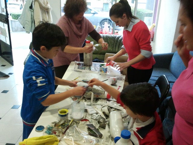 Bajo iniciativa de Izquierda Unida, han decidido reutiizar objetos cotidianos que se desechan en casa y con pintura, tijeras y algo de maña convertirlos en flores, canastos, espirales y estrellas.