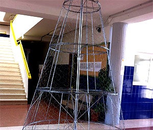 Los colegios de Huétor Vega se preparan ya para las fiestas navideñas. Para adornar el árbol, primero hay que plantarlo. A ese objetivo contribuye Obras ... y Servicios, ofreciendo una espectacular base para que los alumnos del municipio llenen su estructura de motivos propios de estas fechas.