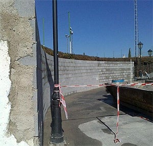 Obras y Servicios ha terminado el trabajo de arreglo del muro del campo de fútbol, el Municipal Las Viñas de Huétor Vega.