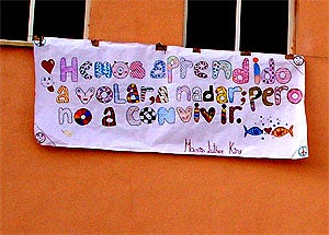 Los alumnos del colegio Mariana Pineda de Huétor Vega celebraron el Día de la Paz con una carrera benéfica y un notable decorado en las paredes externas del centro. Los mensajes de concordia y unidad son visibles desde la calle en los murales, que están llenos de buenos deseos. Como la frase lapidaria de Martin Luther King: ?Hemos aprendido a volar, a nadar, pero no a convivir?.