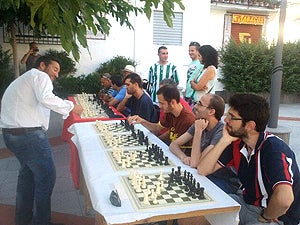 Por segundo año consecutivo y bajo el rótulo de ?Jaque al Rey?, Huétor Vega ha acogido una partida simultánea de ajedrez en plena calle dirigida por el consagrado ajedrecista y monitor granadino Sergio Cuesta Bustos. El evento fue coordinado por IU Huétor Vega.