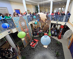 Decía Julio Verne que «todo lo que una persona puede imaginar, otros pueden hacerlo realidad». Esta frase se había convertido en el lema del IES Los Neveros, el instituto de secundaria de Huétor Vega, durante las semanas previas a la Navidad. Durante estos días, los personajes y escenarios de las obras más famosas del imaginativo escritor han inundado la entrada y el patio de luces del edificio: globos como los de ?La vuelta al mundo en ochenta días?, submarinos y fauna acuática, un gran reloj, animales prehistóricos...
