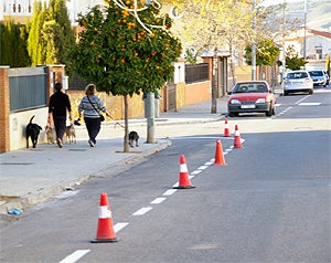 Los trabajos de pintado de la señalización viaria de Huétor Vega se están realizando en horario nocturno para alterar lo menos posible el tráfico rodado, ... según informa la Policía Local.