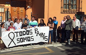 El Grupo Municipal Socialista de Huétor Vega participó este domingo en un minuto de silencio en la plaza del Mentidero en solidaridad con el pueblo francés y en repulsa por la cadena de atentados cometidos ayer por la noche en París.