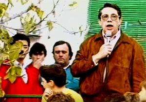 La filmación recoge el discurso en el municipio de Francisco Javier Valls García, diputado por Granada del Grupo Parlamentario Socialista en el Congreso entre 1986 y 1989, y profesor titular de Filosofía del Derecho en la UGR.