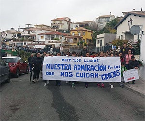 Los niños de Monachil, acompañados de padres y maestros, queremos enviar el beso más grande, el abrazo más fuerte y el cariño más profundo a nuestros compañeros Lucas y Alejandro, para que sepan que estamos con ellos. Como cada recreo. Como cada tarde?.